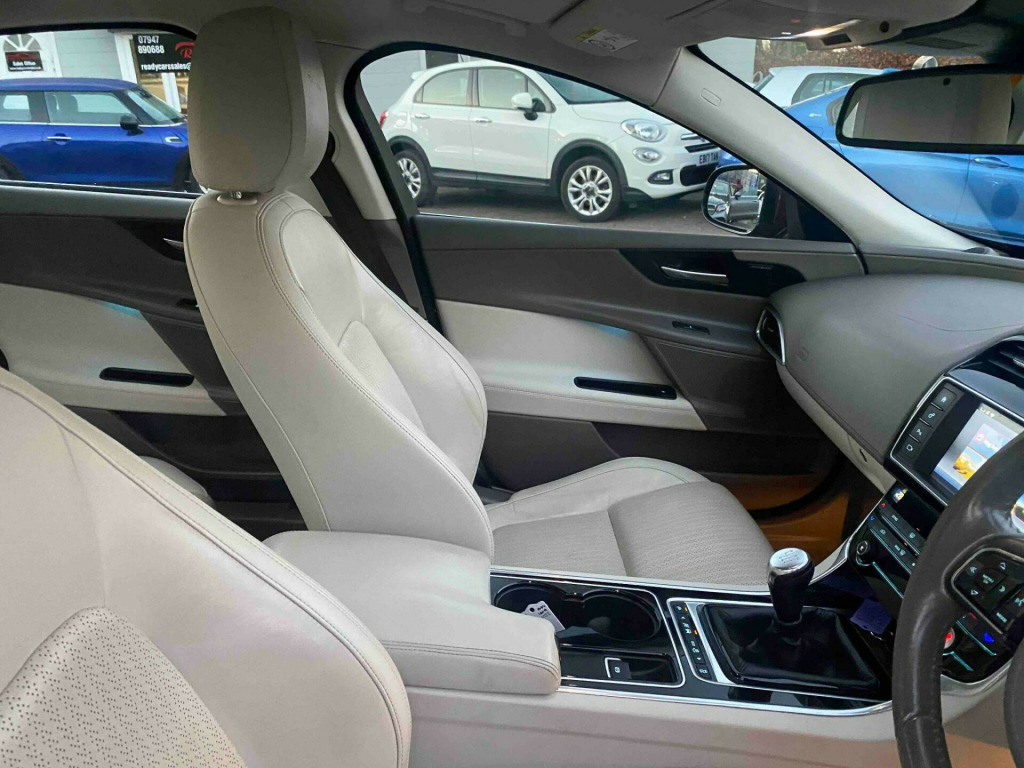 This 2015 Jaguar XE d Portfolio is a superb example of refined motoring, boasting a Euro 6 compliant 2.0L diesel engine. Its Portfolio trim level ensures a premium experience, complemented by desirable features such as heated front seats for added comfort and automatic headlights for convenience. The exterior is enhanced by 17 inch aerodynamic alloy wheels and a discreet bootlid nameplate badge with concealed tailpipes, offering a clean and sophisticated appearance.This Jaguar XE stands out with its exceptional fuel economy, achieving an impressive 75 miles per gallon, which is significantly better than many other vehicles in its class. Furthermore, its low CO2 emissions and low insurance group rating make it a cost effective choice for many drivers, highlighting its efficiency and affordability. v power socket - front, 12v power socket - rear, 17in alloy wheels - aerodynamic 10 spoke, 1x usb socket, 3 rear headrests, 8in capacitive touchscreen, abs - anti-locking braking system, aeb - autonomous emergency braking, am-fm radio, airbags - driver, airbags - front side, airbags - passenger, airbags - side curtain, ambient interior lighting - phosphor blue, approach illumination - automatic via remote, auto-dimming interior rear view mirror, automatic headlight on, auxiliary power sockets, bluetooth audio streaming, bluetooth telephone connectivity, bootlid jaguar leaper and wordmarque, bootlid nameplate badge, brake pad wear indicator, carpet mat set - font and rear, chrome finishers on centre console and chrome frame on touchscreen, chrome side power vents, chrome side window surround, concealed tailpipes, cruise control with adaptive speed limiter, dab radio + and dmb, daytime running lights - led, door mirrors - body coloured, door mirrors - electric adjustment-heated with side repeaters, dual zone automatic climate control, dynamic stability control - dsc, dynamic volume control, eba - emergency brake assist, eco hmi - eco data analysis-parasitic load monitor and driver eco, epas - electric power assisted steering, epb - electric parking brake, electric windows - front and rear with one-touch open-close and anti-trap, embossed bright knurled aluminium veneer, front armrest with storage compartment, front courtesy footwell lights, front and rear map lights, glove compartment lockable, hazard lights under heavy braking, headlight power wash, headlights - automatic levelling, headlights - bi-function hid xenon with led daytime running lights, heat insulating glass - green all-round, heated front seats, hill launch assist, isofix anchor points for rear child seat, illuminated glove box, incontrol apps, incontrol protect, incontrol remote premium for warranty period, interior front door handles with separate locking switches, interior mood lighting, jaguar drive control with eco-dynamic-winter and normal mode, jaguar smart key system with keyless start, jaguar tyre repair system, jaguarsense - overhead light console, jaguarvoice, lane departure warning, loadbay - premium luggage tie downs, locking wheel nuts, meridian audio system, mist sensing, outside temperature gauge, ptc heater, passive front head restraints - whiplash protection, pedestrian contact sensing and deployable bonnet, power operated child locks, radiator grille - gloss black insert with chrome surround, rain sensing windscreen wipers, rear cup holders in armrest, rear parking aid, remote control central locking with dead locking and drive-away locking, satellite navigation - sd card with dynamic route guidance and low co2 routing, seat belt reminder, seats - front 10x10 way - electric adjustment, seats - rear centre armrest, security system, shopping bag hook in trunk, sill finishers - metal with jaguar lettering, steering wheel - adjustable, steering wheel - multi-function, steering wheel - softgrain leather with noble highlights, storage compartment in the doors - front, storage compartment in the doors - rear, sun visor illumination, sunglasses holder in overhead console, traction control, traffic sign recognition, trip computer, twin front cupholders, tyre pressure monitoring system, ipod integration