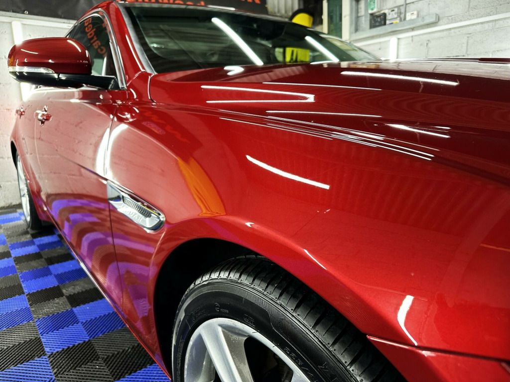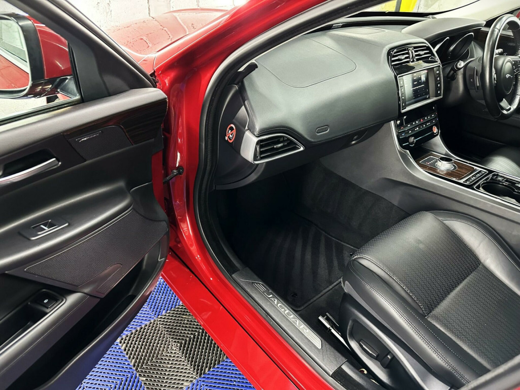 . 12V Power Socket - Front, 12V Power Socket - Rear, 1x USB Socket, 8in Capacitive Touchscreen, AM-FM Radio, Auxiliary Power Sockets, Bluetooth Audio Streaming, Bluetooth Telephone Connectivity, DAB Radio + and DMB, Dynamic Volume Control, InControl Apps, InControl Protect, Meridian Audio System, Satellite Navigation - SD Card with Dynamic Route Guidance and Low CO2 Routing, iPod Integration, 18in Alloy Wheels - Arm 6 Spoke, Bootlid Jaguar Leaper and Wordmarque, Chrome Side Power Vents, Chrome Side Window Surround, Door Mirrors - Body Coloured, Door Mirrors - Electric Adjustment-Heated with Side Repeaters, Electric Windows - Front and Rear with One-Touch Open-Close and Anti-Trap, Heat Insulating Glass - Green All-round, Jaguar Tyre Repair System, Locking Wheel Nuts, Radiator Grille - Gloss Black Insert with Chrome Surround, Single Sided Dual Tailpipes, 3 Rear Headrests, Ambient Interior Lighting - Phosphor Blue, Auto-Dimming Interior Rear View Mirror, Carpet Mat Set - Font and Rear, Chrome Finishers on Centre Console and Chrome Frame on Touchscreen, Dual Zone Automatic Climate Control, Embossed Bright Knurled Aluminium Veneer, Front Armrest with Storage Compartment, Front Courtesy Footwell Lights, Front and Rear Map Lights, Glove Compartment Lockable, Heated Front Seats, Illuminated Glove Box, InControl Remote Premium for Warranty Period, Interior Front Door Handles with Separate Locking Switches, Interior Mood Lighting, Jaguar Smart Key System with Keyless Start, JaguarSense - Overhead Light Console, Loadbay - Premium Luggage Tie Downs, Mist Sensing, Passive Front Head Restraints - Whiplash Protection, Rain Sensing Windscreen Wipers, Rear Cup Holders in Armrest, Seats - Front 10x10 Way - Electric Adjustment, Seats - Rear Centre Armrest, Shopping Bag Hook in Trunk, Sill Finishers - Metal with Jaguar Lettering, Steering Wheel - Adjustable, Steering Wheel - Multi-Function, Steering Wheel - Softgrain Leather with Noble Highlights, Storage Compartment in the Doors - Front, Storage Compartment in the Doors - Rear, Sun Visor Illumination, Sunglasses Holder in Overhead Console, Twin Front Cupholders, ABS - Anti-locking Braking System, AEB - Autonomous Emergency Braking, Airbags - Driver, Airbags - Front Side, Airbags - Passenger, Airbags - Side Curtain, Dynamic Stability Control - DSC, EBA - Emergency Brake Assist, EPB - Electric Parking Brake, Hazard Lights Under Heavy Braking, Hill Launch Assist, ISOFIX Anchor Points for Rear Child Seat, Pedestrian Contact Sensing and Deployable Bonnet, Power Operated Child Locks, Remote Control Central Locking with Dead Locking and Drive-Away Locking, Seat Belt Reminder, Security System, Traction Control, Approach Illumination - Automatic via Remote, Automatic Headlight On, Daytime Running Lights - LED, Headlight Power Wash, Headlights - Automatic Levelling, Headlights - Bi-Function HID Xenon with LED Daytime Running Lights, Brake Pad Wear Indicator, Cruise Control with Adaptive Speed Limiter, ECO HMI - Eco Data Analysis-Parasitic Load Monitor and Driver Eco, EPAS - Electric Power Assisted Steering, Jaguar Drive Control with Eco-Dynamic-Winter and Normal Mode, JaguarVoice, Lane Departure Warning, Outside Temperature Gauge, PTC Heater, Rear Parking Aid, Traffic Sign Recognition, Trip Computer, Tyre Pressure Monitoring System, Italian Racing Red, Sliding Panoramic Roof, Windscreen - Heated with Timer.