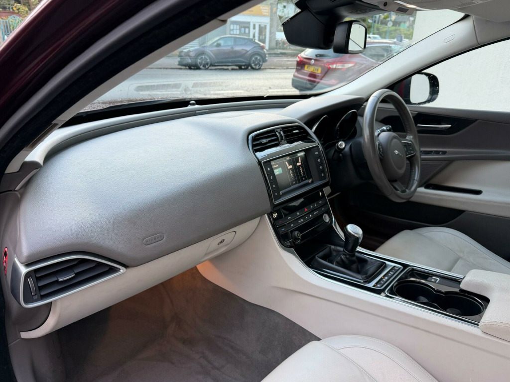 This 2016 Jaguar XE d Prestige presents an exceptional opportunity with its remarkably low mileage of just 51,000 miles. This executive saloon, powered by a 2.0L Euro 6 diesel engine, offers a refined driving experience. The Prestige trim level ensures a comfortable journey, enhanced by features such as heated front seats, Full Light Leather Interior, Bluetooth telephone connectivity, and dual zone automatic climate control. For added convenience and safety, this Jaguar XE includes automatic headlights and rear parking aid.The Jaguar XE d Prestige stands out with its impressive fuel economy, achieving up to 67 miles per gallon, which is significantly better than many other vehicles in its class. Its low CO2 emissions and low insurance group also contribute to lower running costs, making it an economical choice. Furthermore, its brisk acceleration, capable of reaching 0 to 60 miles per hour in just 7.4 seconds, demonstrates that efficiency does not compromise performance. Full Service History. 2 Keys v power socket - front, 12v power socket - rear, 17in alloy wheels - crux 7 twin spoke, 1x usb socket, 3 rear headrests, 8in capacitive touchscreen, abs - anti-locking braking system, aeb - autonomous emergency braking, am-fm radio, airbags - driver, airbags - front side, airbags - passenger, airbags - side curtain, ambient interior lighting - phosphor blue, approach illumination - automatic via remote, auto-dimming interior rear view mirror, automatic headlight on, auxiliary power sockets, bluetooth audio streaming, bluetooth telephone connectivity, bootlid jaguar leaper and wordmarque, brake pad wear indicator, brushed aluminium veneer, carpet mat set - font and rear, chrome finishers on centre console and chrome frame on touchscreen, chrome side power vents, chrome side window surround, cruise control with adaptive speed limiter, dab radio + and dmb, drl - daytime running lights, door mirrors - body coloured, door mirrors - electric adjustment-heated with side repeaters, dual zone automatic climate control, dynamic stability control - dsc, dynamic volume control, eba - emergency brake assist, eco hmi - eco data analysis-parasitic load monitor and driver eco, epas - electric power assisted steering, epb - electric parking brake, electric windows - front and rear with one-touch open-close and anti-trap, front armrest with storage compartment, front courtesy footwell lights, front and rear map lights, glove compartment lockable, grained black radiator grille with chrome surround, hazard lights under heavy braking, headlights - reflector halogen, heat insulating glass - green all-round, heated front seats, hill launch assist, isofix anchor points for rear child seat, illuminated glove box, incontrol apps, incontrol protect, incontrol remote premium for warranty period, interior front door handles with separate locking switches, interior mood lighting, jaguar drive control with eco-dynamic-winter and normal mode, jaguar smart key system with keyless start, jaguar sound system, jaguar tyre repair system, jaguarsense - overhead light console, jaguarvoice, lane departure warning, loadbay - premium luggage tie downs, locking wheel nuts, mist sensing, outside temperature gauge, ptc heater, passive front head restraints - whiplash protection, pedestrian contact sensing and deployable bonnet, power operated child locks, rain sensing windscreen wipers, rear cup holders in armrest, rear parking aid, remote control central locking with dead locking and drive-away locking, satellite navigation - sd card with dynamic route guidance and low co2 routing, seat belt reminder, seats - electric recline, seats - front 8x8 way manual adjustment, seats - rear centre armrest, security system, shopping bag hook in trunk, sill finishers - metal with jaguar lettering, single sided dual tailpipes, steering wheel - adjustable, steering wheel - multi-function, steering wheel - softgrain leather with noble highlights, storage compartment in the doors - front, storage compartment in the doors - rear, sun visor illumination, sunglasses holder in overhead console, traction control, traffic sign recognition, trip computer, twin front cupholders, tyre pressure monitoring system, ipod integration