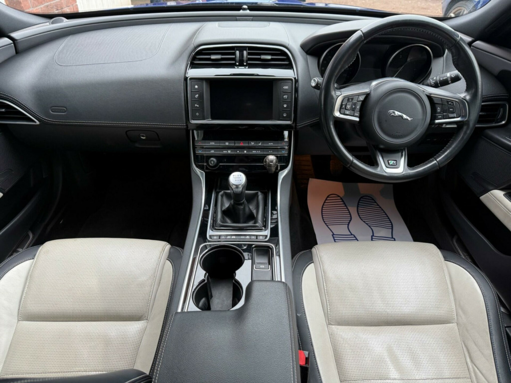 This 2017 Jaguar XE d R-Sport boasts a clear vehicle history and has been owned by only two careful owners. It features a powerful yet efficient 2.0L Diesel engine, meeting Euro 6 emissions standards. Inside, you'll find comfortable heated front seats and dual zone automatic climate control to keep you comfortable in all conditions. The R-Sport trim also includes Bi-function Xenon headlights with distinctive LED J Blade daytime running lights, and rear parking aid for added convenience.Experience impressive performance with a 0-60mph acceleration of just 7.4 seconds, all while achieving an outstanding fuel economy of 67 mpg. This Jaguar XE also benefits from a low insurance group and low CO2 emissions, making it a more economical choice compared to many similar vehicles. An Optimum Shift Indicator is also fitted, helping you to drive more efficiently. v power sockets, 18in alloy wheels - star 5 spoke, 1x usb socket, 20d badge, 3 rear headrests, 3-flash lane change indicators, 8-way manual front seats with electric recline, 8in capacitive touchscreen, abs - anti-locking braking system, aeb - autonomous emergency braking, am-fm radio, airbags - driver and front passenger with seat occupant detector for passenger, airbags - front side, airbags - full length side window curtain, approach illumination - automatic via remote, audio aux in, auto-dimming interior rear view mirror, bi-function xenon headlights with led j blade daytime running lights, bluetooth streaming, bluetooth telephone connectivity, body-coloured extended side sills, boot lid spoiler, bootlid jaguar leaper and wordmarque, bootlid xe badge, brake pad wear indicator, carpet mat set - font and rear, cruise control with speed limiter, digital audio broadcast - dab - radio, driver and front passenger sun visors, dual zone automatic climate control, dynamic stability control and traction control, dynamic volume control, eba - emergency brake assist, eco hmi - eco data analysis-parasitic load monitor and driver eco, epas - electric power assisted steering, epb - electric parking brake, electric windows - front and rear with one-touch open-close and anti-trap, etched aluminium trim finisher, fixed rear seat, front armrest with storage compartment, gloss black side window surround, glove compartment lockable, grained black radiator grille with satin chrome surround, hazard lights under heavy braking, heat insulating glass - green all-round, heated door mirrors, heated front seats, heated rear screen, hill start assist, isofix anchor points for rear child seat, illuminated glove box, incontrol apps, incontrol protect, incontrol touch navigation - sd, interior front door handles with separate locking switches, interior mood lighting, jaguar smart key system with keyless start, jaguar sound system, jaguar tyre repair system, jaguardrive control, jaguarsense - overhead light console, jet headlining, led rear signature lights, lane departure warning, loadbay - premium luggage tie downs, locking wheel nuts, metal treadplates with r-sport branding, mist sensing, optimum shift indicator, outside temperature gauge, ptc heater, passive front head restraints - whiplash protection, pedestrian contact sensing, pollen filter, power operated child locks, r-sport body kit, r-sport branded multi-function softgrain leather steering wheel, r-sport front bumper, rain sensing windscreen wipers, rear armrest with twin cupholders, rear parking aid, remote control central locking with dead locking and drive-away locking, remote premium for warranty period, row 2 air vents, satin chrome side vents with r-sport badge, satin chrome touchscreen surround, seat belt reminder, seats - sports, shopping bag hook in trunk, single sided twin tailpipes with 75mm finishers, speed proportional steering, sports suspension, start up sequence, storage compartment in the doors - front, storage compartment in the doors - rear, sunglasses holder in overhead console, tpo wrapped ip, taurus grain wrapped instrument panel topper, torque vectoring by braking - tvbb, traffic sign recognition with adaptive speed limiter, twin front cupholders, tyre pressure monitoring system, variable intermittent wipers, voice control, ipod integration