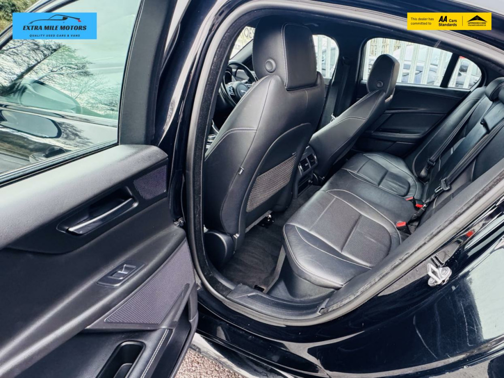 The XE is not only about performance; it is also designed with efficiency in mind, boasting an impressive fuel consumption of 67.3 mpg, making it an economical choice for both city and long-distance driving. Additionally, it is ULEZ compliant, allowing you to navigate urban areas with ease and peace of mind. With a spacious interior that comfortably seats five and a full leather upholstery, this saloon offers both style and comfort for all passengers.