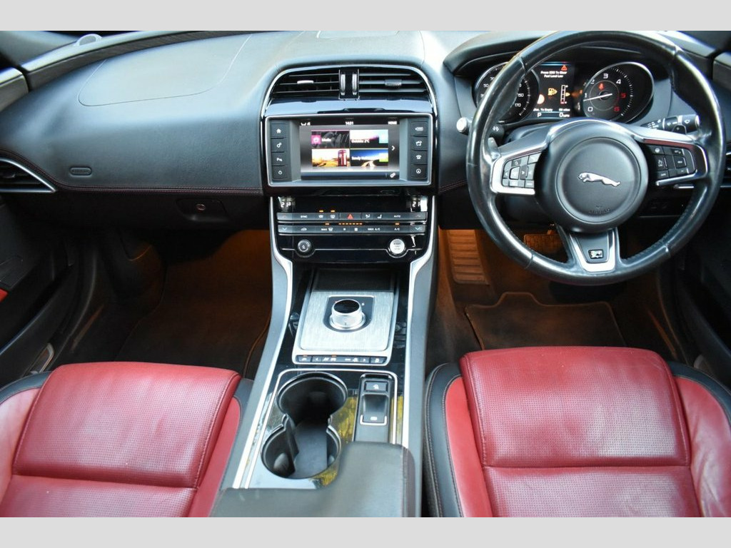 with Black/Red Leather, 19" 5 Double Spoke Alloy Wheels, Rear Parking Sensors, Bluetooth, Satellite Navigation, Cruise Control, Dual Auto Climate Control,Heated Front Seats, Auto Lights, Meridian Sound, Service History, Serviced at 20620, 41563 and last serviced at 85539 miles, Mot until September 2026, Spare Key, 12V Power Socket - Front, 12V Power Socket - Rear, 18in Alloy Wheels - Star 5 Spoke, 1x USB Socket, 3 Rear Headrests, 8in Capacitive Touchscreen, ABS - Anti-locking Braking System, AEB - Autonomous Emergency Braking, AM-FM Radio, Airbags - Driver, Airbags - Front Side, Airbags - Passenger, Airbags - Side Curtain, Ambient Interior Lighting - Phosphor Blu, Approach Illumination - Automatic via Re, Auto-Dimming Interior Rear View Mirror, Automatic Headlight On, Auxiliary Power Sockets, Bluetooth Audio Streaming, Bluetooth Telephone Connectivity, Boot Lid Spoiler, Bootlid Jaguar Leaper and Wordmarque, Brake Pad Wear Indicator, Carpet Mat Set - Font and Rear, Chrome Finishers on Centre Console an