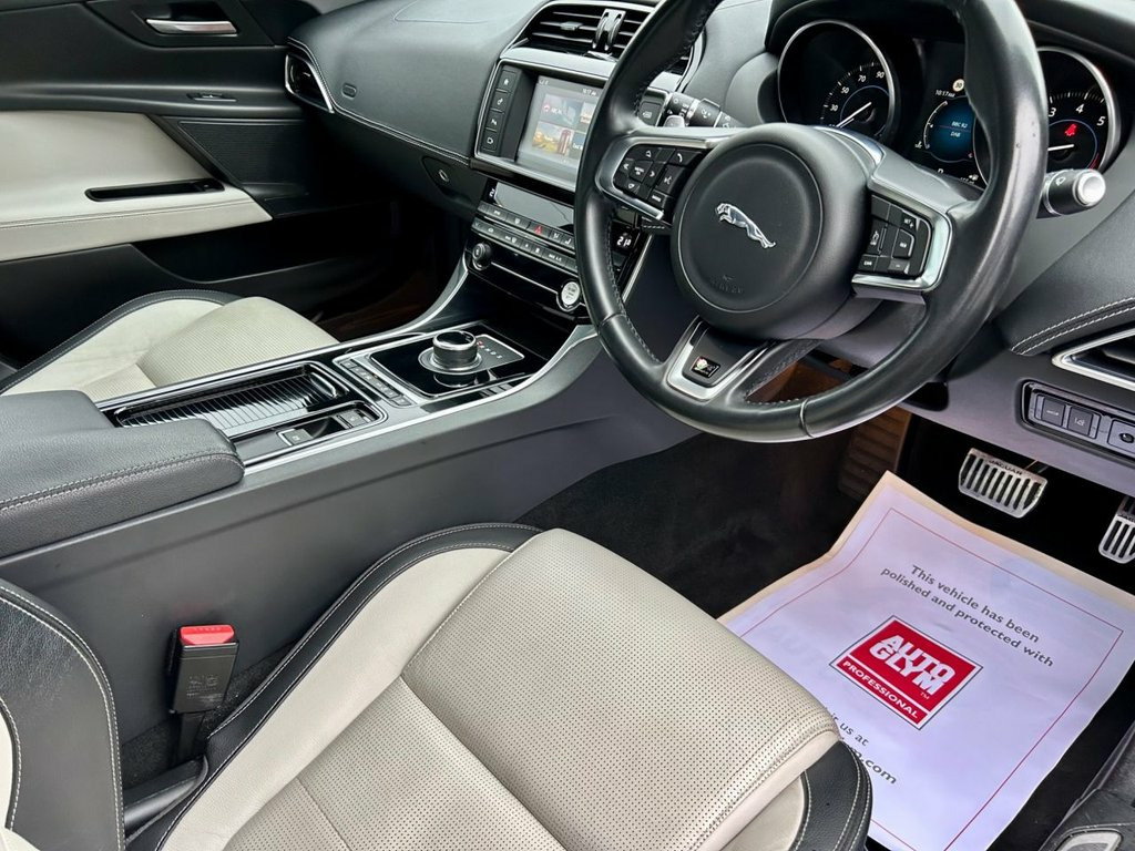 A Great Looking, Petrol, R-Sport XE. Our Jaguar is Presented in Loire Blue Metallic with 2 Tone Ivory and Black leather upholstery and 18 Inch 5 Spoke Alloy Wheels. Specification Includes all you need and Features Touch screen Navigation, Bluetooth and Multi-media Connectivity, 3 Stage seat heating,Dual zone climate control, Cruise control, Electric mirrors, Front and Rear Parking Sensors and a Reverse Angle Camera. Supplied with Original Owners manuals, 2 keys and service confirmation at 9794m, 14000m, 20477m, 35359m, 47621m and 56597 miles Loire Blue, Parking Pack, Perforated Taurus Leather - Ebony-Light