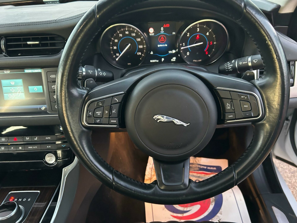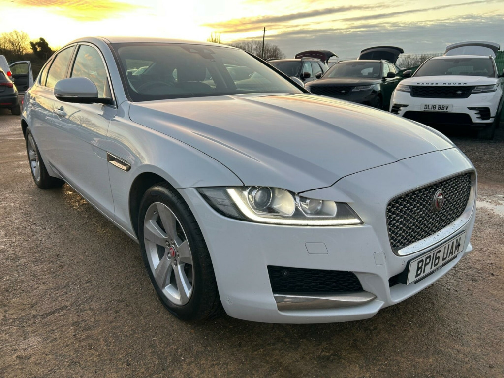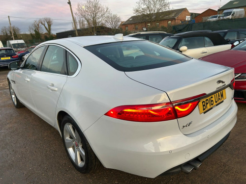 With only two previous owners and low mileage of just 63,877 miles for its age, this 2016 Jaguar XF Portfolio d is a smart choice. The vehicle is equipped with a 2.0L diesel engine and a four-wheel-drive drivetrain, and it meets Euro 6 emission standards. The car has partial service history and a clear vehicle history check for added peace of mind. Enjoy premium features such as heated front seats, a Meridian 380W sound system, rear parking aid, and 2-zone climate control.The spacious boot offers ample room, making this vehicle more practical than others in its class. The inclusion of a Bootlid 20d AWD Badge adds to the vehicle's aesthetic appeal. This Jaguar XF combines luxury, performance, and practicality in one refined package. -way electric front seats, 12v power sockets, 18in alloy wheels - fan 5 spoke with silver finish, 1x usb socket, 2-zone climate control, 3 rear headrests, 3-flash lane change indicators, 4-way electric lumbar adjust, 40-20-40 split fold rear seat, 8in capacitive touchscreen, abs - anti-locking braking system, aeb - autonomous emergency braking, am-fm radio, aspc - all surface progress control, acoustic layer windshield, airbags - driver and front passenger with seat occupant detector for passenger, airbags - front side, airbags - full length side window curtain, analogue dials with 5in full colour tft display, approach illumination, audio aux in, auto-dimming - power fold - heated door mirrors with approach lights, auto-dimming interior rear view mirror, automatic headlight on, bi-function xenon headlights with led j blade daytime running lights, bluetooth streaming, bluetooth telephone connectivity, bootlid 20d awd badge, bootlid jaguar leaper and wordmarque, bootlid nameplate badge, brake pad wear indicator, chrome bootlid finisher, chrome radiator grille with chrome surround, chrome side power vents, chrome side window surround, cruise control with adaptive speed limiter, digital audio broadcast - dab - radio, driver and front passenger sun visors with illuminated vanity mirrors, dynamic stability control and traction control, dynamic volume control, eba - emergency brake assist, eco hmi, epb - electric parking brake, electric windows, front armrest with storage compartment, front deployable vents, front parking aid, gear shift change paddles, glove compartment lockable, hazard lights under heavy braking, headlight power wash, heat insulating glass - green all-round, heated front seats, heated front windscreen, heated rear screen, hill launch assist, isofix rear, incontrol apps, incontrol protect, incontrol remote premium, incontrol touch navigation - sd, incontrol wifi, interior mood lighting, jaguar smart key system - keyless start - start-stop button, jaguar smart key system with keyless entry and push button start, jaguar tyre repair system, jaguardrive control, jaguarsense - overhead light console, lane departure warning, light oyster headlining, loadbay - luggage tie downs, locking wheel nuts, meridian sound system - 380w, metal treadplates with jaguar script, morse code aluminium instrument panel finisher, morzine headlining, multi-function softgrain leather steering wheel, outside temperature gauge, partial led rear lights, passive front head restraints - whiplash protection, pedestrian contact sensing, perimeter sensing alarm and immobiliser, pollen filter, power operated child locks, premium carpet mats, rain sensing windscreen wipers, rear armrest with twin cupholders, rear parking aid, rear view camera, remote control central locking with dead locking and drive-away locking, row 2 air vents, seat belt reminder, shopping bag hook in trunk, single sided twin tailpipes with 75mm finishers, speed proportional steering, start up sequence, storage compartment in the doors - front, storage compartment in the doors - rear, sunglasses holder in overhead console, torque vectoring by braking - tvbb, traffic sign recognition with adaptive speed limiter, trailer stability control, twin front cupholders, twin rear cupholders, tyre pressure monitoring system, variable intermittent wipers, veneer - gloss figured ebony, windsor leather wrapped instrument panel topper, ipod integration