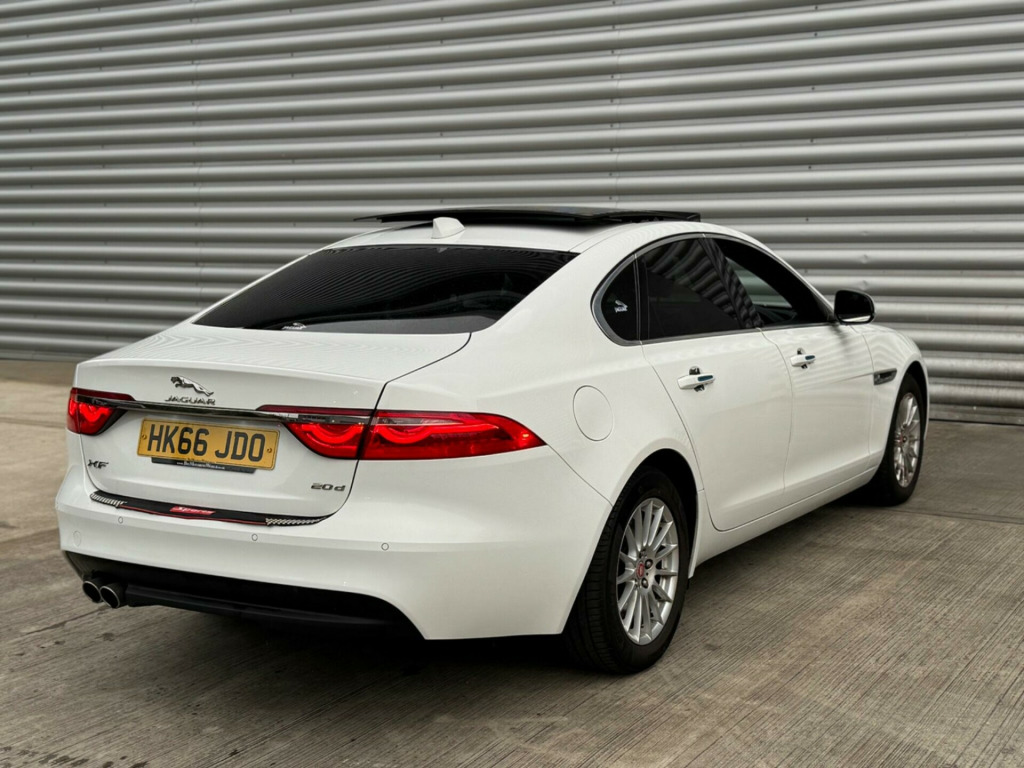 This 2016 Jaguar XF d Prestige presents an exceptional ownership proposition with only two previous owners and a remarkably low mileage of 67,000 miles for its age. This executive saloon, powered by an efficient 2.0L Diesel Euro 6 engine, offers a refined driving experience. It comes equipped with a desirable tilt and slide electric glass sunroof for an airy cabin, and for added convenience and safety, features Adaptive Cruise Control with Queue Assist and Intelligent Emergency Braking, alongside a rear view camera for easier parking. The Prestige trim also includes privacy glass, enhancing both style and comfort.The Jaguar XF d Prestige stands out with its impressive fuel economy, achieving a remarkable 66 mpg, which is significantly better than many other vehicles in its class. This, combined with its low CO2 emissions and low insurance group rating, makes it a cost effective choice for daily driving and longer journeys. Furthermore, the generous boot space ensures practicality for all your needs, making this Jaguar XF a compelling option for those seeking a blend of luxury, efficiency, and value. v power socket - front, 17in alloy wheels - lightweight 15 spoke with silver finish, 1x usb socket, 3.5mm stereo auxiliary input socket, 2-zone climate control, 3 rear headrests, 3 spoke softgrain leather steering wheel, 3-flash lane change indicators, 8-way manual front seats with electric recline, 8in capacitive touchscreen, abs - anti-locking braking system, aeb - autonomous emergency braking, am-fm radio, asl - automatic speed limiter, aspc - all surface progress control, acoustic layer windshield, airbags - driver, airbags - front side, airbags - passenger, airbags - side curtain, analogue dials with 5in full colour tft display, approach illumination - automatic via remote, auto-dimming interior rear view mirror, automatic headlight on, bluetooth audio streaming, bluetooth telephone connectivity, bootlid - powertrain badging - 20d, bootlid jaguar leaper and wordmarque, bootlid nameplate badge, brake pad wear indicator, cbc - cornering brake control, carpet mat set - front and rear - oyster, chrome side power vents, chrome side window surround, cruise control with adaptive speed limiter, dab radio + and dmb, dead locking, door mirrors - body coloured, door mirrors - electric adjustment-heated with side repeaters, driver and front passenger sun visors with illuminated vanity mirrors, drivers foot rest, dynamic volume control, eba - emergency brake assist, ebd - electronic brake-force distribution, eco hmi - eco data analysis-parasitic load monitor and driver eco, epas - electric power assisted steering, epb - electronic parking brake - drive away release, electric windows, electrochromic rear interior view mirror, fixed rear seat, front armrest with storage compartment, front courtesy footwell lights, front seats - whiplash reduction system, gloss black veneer, glove compartment lockable, grained black radiator grille with chrome surround, hazard lights under heavy braking, headlight power wash, headlights - automatic levelling, headlights - bi-function hid xenon with led daytime running lights, headlining - morzine - light oyster, heat insulating glass - green all-round, heated front seats, hill launch assist, isofix anchor points for rear child seat, illuminated glove box, incontrol apps, incontrol protect, incontrol remote premium for warranty period, incontrol touch navigation - sd, incontrol wifi, interactive voice control, interior mood lighting, jaguar drive control with eco-dynamic-winter and normal mode, jaguar smart key system with keyless start, jaguar sound system, jaguar tyre repair system, jaguarsense - overhead light console, led tail lights, lane departure warning, leatherette wrapped ip topper, loadbay - luggage tie downs, locking wheel nuts, morse code aluminium instrument panel finisher, outside temperature gauge, passive front head restraints - whiplash protection, pedestrian contact sensing and deployable bonnet, perimeter alarm, pollen filter, power operated child locks, rain sensing windscreen wipers, rear parking aid, remote control central locking, seat belt reminder, seats - driver height adjustable, seats - front - back map pockets, seats - rear centre armrest, shopping bag hook in trunk, signature j blade daytime running lights - led, sill finishers - metal with jaguar lettering, single sided dual tailpipes, speakers x8, steering column - electric adjustment for height and reach with entry and exit tilt-away, steering wheel - multi-function, steering wheel with jaguar sequential shift paddles, storage compartment in the doors - front, storage compartment in the doors - rear, sunglasses holder in overhead console, torque vectoring by braking - tvbb, trac dsc - dynamic stability control with 3 setting levels, traction control, traffic sign recognition with intelligent speed limiter, trailer stability control, trip computer, trunk finisher - chrome, twin cupholders in rear seat centre armrest, twin front cupholders, tyre pressure monitoring system, vehicle immobiliser, ipod integration, electric sunroof - tilt-slide glass with one touch operation, electric tilt-slide sunroof, rear view camera, adaptive cruise control with queue assist, acc - adaptive cruise control with forward alert-queue assist-intelligent emergency braking and follow mode off, privacy glass, 19in alloy wheels - axis 14 spoke with contrast diamond turned finish
