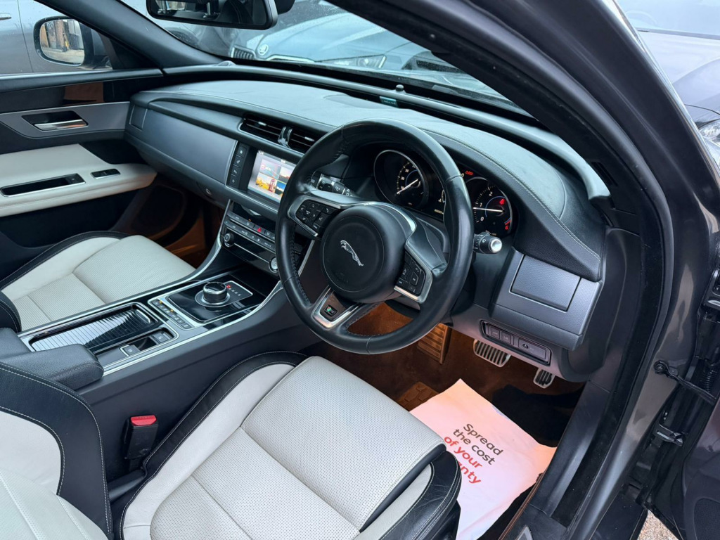 THREE MONTHS WARRANTY, MOT 08-06-2026,LEATHER SEATS, HEATED SEATS, SAT NAV, PARKING SENSORS, 2 KEYS. 12V Power Socket - Front, 18in Alloy Wheels - Helix 10 Spoke with Silver Finish, 1x USB Socket, 2-Zone Climate Control, 3 Rear Headrests, 3-Flash Lane Change Indicators, 3.5mm Stereo Auxiliary Input Socket, 8-Way Manual Front Seats with Electric Recline, 8in Capacitive Touchscreen, ABS - Anti-locking Braking System, AEB - Autonomous Emergency Braking, AM-FM Radio, ASL - Automatic Speed Limiter, ASPC - All Surface Progress Control, Acoustic Layer Windshield, Airbags - Driver, Airbags - Front Side, Airbags - Passenger, Airbags - Side Curtain, Analogue Dials with 5in Full Colour TFT Display, Approach Illumination - Automatic via Remote, Auto-Dimming Interior Rear View Mirror, Automatic Headlight On, Bluetooth Audio Streaming, Bluetooth Telephone Connectivity, Body Coloured Bootlid Mounted Spoiler, Bootlid - Powertrain Badging - 20d, Bootlid Jaguar Leaper and Wordmarque, Bootlid Nameplate Badge, Brake Pad Wear Indicator, Bright Finish Stainless Steel Pedals, CBC - Cornering Brake Control, Carpet Mat Set - Front and Rear - Jet, Cruise Control with Adaptive Speed Limiter, DAB Radio + and DMB, Dark Morse Code Aluminium Instrument Panel Finisher, Dead Locking, Door Mirrors - Body Coloured, Door Mirrors - Electric Adjustment-Heated with Side Repeaters, Driver and Front Passenger Sun Visors with Illuminated Vanity Mirrors, Drivers Foot Rest, Dynamic Volume Control, EBA - Emergency Brake Assist, EBD - Electronic Brake-Force Distribution, ECO HMI - Eco Data Analysis-Parasitic Load Monitor and Driver Eco, EPAS - Electric Power Assisted Steering, EPB - Electronic Parking Brake - Drive Away Release, Electric Windows, Electrochromic Rear Interior View Mirror, Fixed Rear Seat, Front Armrest with Storage Compartment, Front Courtesy Footwell Lights, Front Parking Aid, Front Seats - Whiplash Reduction System, Gloss Black Veneer, Glove Compartment Lockable, Hazard Lights Under Heavy Braking, Headlight Power Wash, Headlights - Automatic Levelling, Headlights - Bi-Function HID Xenon with LED Daytime Running Lights, Headlining - Morzine - Jet, Heat Insulating Glass - Green All-round, Heated Front Seats, Hill Launch Assist, ISOFIX Anchor Points for Rear Child Seat, Illuminated Glove Box, InControl Apps, InControl Protect, InControl Remote Premium for Warranty Period, InControl Touch Navigation - SD, InControl WiFi, Interactive Voice Control, Interior Mood Lighting, Jaguar Drive Control with Eco-Dynamic-Winter and Normal Mode, Jaguar Smart Key System with Keyless Start, Jaguar Sound System, Jaguar Tyre Repair System, JaguarSense - Overhead Light Console, LED Tail Lights, Lane Departure Warning, Leatherette Wrapped IP Topper, Loadbay - Luggage Tie Downs, Locking Wheel Nuts, Outside Temperature Gauge, Passive Front Head Restraints - Whiplash Protection, Pedestrian Contact Sensing and Deployable Bonnet, Perimeter Alarm, Pollen Filter, Power Operated Child Locks, R-Sport Fender Vent Badge, R-Sport Front Bumper, Radiator Grille - Grained Black with Noble Chrome Surround, Rain Sensing Windscreen Wipers, Rear Parking Aid, Remote Control Central Locking, Satin Chrome Side Vents with R-Sport Badge, Seat Belt Reminder, Seats - Driver Height Adjustable, Seats - Front - Back Map Pockets, Seats - Rear Centre Armrest, Seats - Sports, Shopping Bag Hook in Trunk, Side Sills - Body Coloured - R-Sport, Signature J Blade Daytime Running Lights - LED, Sill Finishers - Metal with Jaguar R-Sport Branding, Single Sided Dual Tailpipes, Speakers x8, Sport Suspension Upgrade, Steering Column - Electric Adjustment for Height and Reach with Entry and Exit Tilt-Away, Steering Wheel - Multi-Function, Steering Wheel - R Sport Branded Soft Grain Leather, Steering Wheel with Jaguar Sequential Shift Paddles, Storage Compartment in the Doors - Front, Storage Compartment in the Doors - Rear, Sunglasses Holder in Overhead Console, Torque Vectoring by Braking - TVBB, Trac DSC - Dynamic Stability Control with 3 Setting Levels, Traction Control, Traffic Sign Recognition with Intelligent Spee.