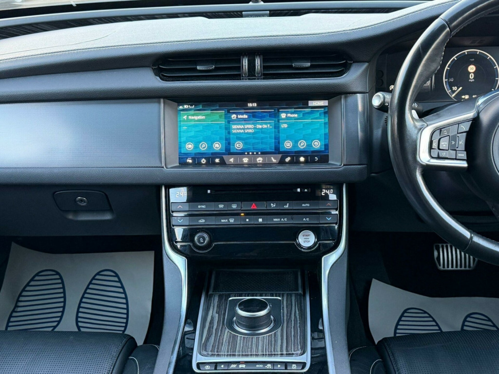 THREE MONTHS WARRANTY, MOT 12-09-2026, DIGITAL CLUSTER, APPLE CAR PLAY, SAT NAV , LEATHER SEATS, HEATED SEATS, 2 KEYS,. 12V Power Sockets, 18in Alloy Wheels - Helix 10 Spoke with Silver Finish, 1x USB Socket, 2-Zone Climate Control, 20d Badge, 3 Rear Headrests, 3-Flash Lane Change Indicators, 8-Way Manual Front Seats with Electric Recline, 8in Capacitive Touchscreen, ABS - Anti-locking Braking System, AEB - Autonomous Emergency Braking, AM-FM Radio, ASPC - All Surface Progress Control, Acoustic Layer Windshield, Airbags - Driver and Front Passenger with Seat Occupant Detector for Passenger, Airbags - Front Side, Airbags - Full Length Side Window Curtain, Analogue Dials with 5in Full Colour TFT Display, Approach Illumination, Audio AUX In, Auto-Dimming Interior Rear View Mirror, Automatic Headlight On, Bi-function Xenon Headlights with LED J Blade Daytime Running Lights, Bluetooth Streaming, Bluetooth Telephone Connectivity, Bootlid Jaguar Leaper and Wordmarque, Bootlid Nameplate Badge, Brake Pad Wear Indicator, Bright Sport Pedals, Carpet Mats, Cruise Control with Adaptive Speed Limiter, Dark Morse Code Aluminium Instrument Panel Finisher, Digital Audio Broadcast - DAB - Radio, Driver and Front Passenger Sun Visors with Illuminated Vanity Mirrors, Dynamic Stability Control and Traction Control, Dynamic Volume Control, EBA - Emergency Brake Assist, ECO HMI, EPB - Electric Parking Brake, Electric Windows, Fixed Rear Seat, Front Armrest with Storage Compartment, Front Deployable Vents, Front Parking Aid, Gear Shift Change Paddles, Gloss Black Side Window Surround, Gloss Black Veneer, Glove Compartment Lockable, Grained Black Radiator Grille with Satin Chrome Surround, Hazard Lights Under Heavy Braking, Headlight Power Wash, Heat Insulating Glass - Green All-round, Heated Door Mirrors, Heated Front Seats, Heated Rear Screen, Hill Launch Assist, ISOFIX Rear, InControl Apps, InControl Protect, InControl Remote Premium, InControl Touch Navigation - SD, InControl WiFi, Interior Mood Lighting, Jaguar Smart Key System - Keyless Start - Start-Stop Button, Jaguar Sound System, Jaguar Tyre Repair System, JaguarDrive Control, JaguarSense - Overhead Light Console, Jet Headlining, Lane Departure Warning, Loadbay - Luggage Tie Downs, Locking Wheel Nuts, Metal Treadplates with R-Sport Branding, Morzine Headlining, Outside Temperature Gauge, Partial LED Rear Lights, Passive Front Head Restraints - Whiplash Protection, Pedestrian Contact Sensing, Perimeter Sensing Alarm and Immobiliser, Pollen Filter, Power Operated Child Locks, R-Sport Badge in Side Power Vents, R-Sport Body Kit, R-Sport Branded Multi-Function Softgrain Leather Steering Wheel, Rain Sensing Windscreen Wipers, Rear Armrest with Twin Cupholders, Rear Parking Aid, Remote Control Central Locking with Dead Locking and Drive-Away Locking, Row 2 Air Vents, Seat Belt Reminder, Shopping Bag Hook in Trunk, Single Sided Twin Tailpipes with 75mm Finishers, Speed Proportional Steering, Sport Suspension Upgrade, Start Up Sequence, Storage Compartment in the Doors - Front, Storage Compartment in the Doors - Rear, Sunglasses Holder in Overhead Console, Taurus Grain Wrapped Instrument Panel Topper, Torque Vectoring by Braking - TVBB, Traffic Sign Recognition with Adaptive Speed Limiter, Trailer Stability Control, Twin Front Cupholders, Twin Rear Cupholders, Tyre Pressure Monitoring System, Variable Intermittent Wipers, iPod Integration.