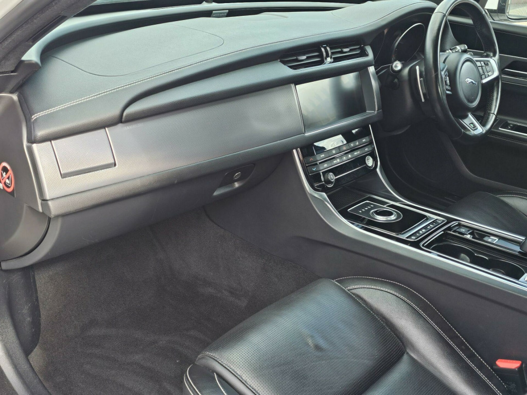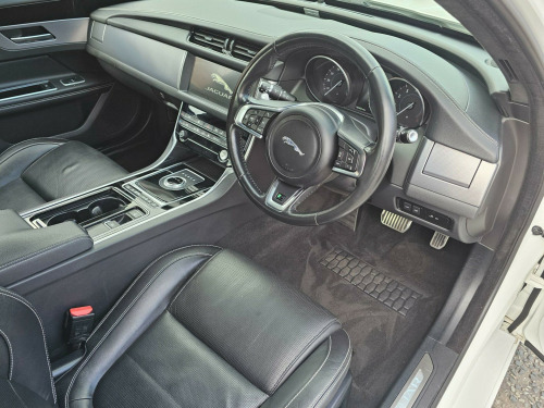 THIS GOOD CONDITION & RARE PETROL-POWERED JAGUAR XF R-SPORT IS PRESENTED IN WHITE WITH CHROME ACCENTS, R-SPORT BODY MOULDINGS AND 18'' ALLOYS . THE RELIABLE, ECONOMICAL YET POWERFUL 2.0I ENGINE IS CONNECTED TO AN AUTOMATIC GEARBOX MAKING FOR A GREAT DRIVE WHETHER AROUND TOWN OR ON THE MOTORWAY AND THE TIMING CHAIN HAS BEEN REPLACED BY US, WITH A NEW FULL TIMING CHAIN KIT. THE PLUSH INTERIOR CONTAINS FULL BLACK LEATHER SEATS (HEATED FRONT) AND BLACK DOOR TRIM WITH BRUSHED CHROME WITH PIANO BLACK INLAYS TO THE CENTRE CONSOLE. EQUIPMENT INCLUDES A 7'' COLOUR DISPLAY GIVING ACCESS TO THE SAT-NAV, BLUETOOTH TELEPHONE AND AUDIO STREAMING, DAB RADIO VIA THE JAGUAR AUDIO SYSTEM WHICH INCLUDES APPS AND WIFI ETC. FURTHER EQUIPMENT INCLUDES AUTO XENON HEADLIGHTS, FRONT & REAR PARKING AID, MOOD LIGHTING, STAINLESS STEEL PEDALS, LOTS OF ACTIVE AND PASSIVE SAFETY SYSTEMS TO KEEP YOU SAFE ON THE ROAD WITH EVEN MORE TO BE DISCOVERED. WE HAVE FULLY INSPECTED AND SERVICED THIS CAR, SO THE ONLY ISSUE FOR ITS NEW OWNER WILL BE WHERE THE NEXT TRIP SHOULD BE. PLEASE CALL 0161 761 3452 (OPTION 2) TO ARRANGE A VIEWING, TO RESERVE THE CAR OR FOR MORE INFORMATION. WHILST EVERY EFFORT HAS BEEN MADE TO ENSURE THAT THE STATED SPECIFICATION IS ACCURATE, PLEASE CHECK WITH A MEMBER OF THE SALES TEAM IF A PARTICULAR SPECIFICATION/FEATURE IS IMPORTANT TO YOU.. 10in Touch Pro, 12V Sockets in Front and Rear, 18in Alloy Wheels - 5 Split-Spoke Style 5033, 2-Zone Climate Control, 25t Badge, 3 Rear Headrests, 3-Flash Lane Change Indicators, 5in Display with Instrument Panel, 8-Way Manual Front Seats with Electric Recline, ABS - Anti-locking Braking System, ASPC - All Surface Progress Control, Acoustic Laminated Windscreen, Airbags - Front Side, Airbags - Full Length Side Window Curtain, Ambient Interior Lighting, Analogue Dials with Central TFT Display, Auto-Dimming Interior Rear View Mirror, Automatic Headlights, Autonomous Emergency Braking, Aux Input and USB Socket, Bluetooth Audio Streaming, Bluetooth Telephone Connectivity, Body-Coloured Extended Side Sills, Brake Pad Wear Indicator, Bright Metal Pedals, Centre Console with Storage and Armrest, Chrome Seat Switches, Connect, Cruise Control with Speed Limiter, Dark Morse Code Aluminium Instrument Panel Finisher, Deployable Front Air Vents, Digital Audio Broadcast - DAB - Radio, Dynamic Stability Control and Traction Control, Dynamic Volume Control, ECO Driving Style Assistant, EPAS - Electric Power Assisted Steering, EPB - Electronic Parking Brake - Drive Away Release, Ebony Suedecloth Headlining, Electric Windows - Front and Rear with One-Touch Open-Close and Anti-Trap, Emergency Braking, Fixed Rear Seat, Front Airbags with Passenger Seat Occupant Detector, Front Door Storage Space, Front Parking Aid, Gear Shift Change Paddles, Gloss Black Side Window Surround, Gloss Black Trim Finisher, Grained Black Radiator Grille with Satin Chrome Surround, Hazard Lights Under Heavy Braking, Headlight Power Wash, Heat Insulating Glass, Heated Door Mirrors, Heated Front Seats, Heated Rear Window, Hill Launch Assist, Hooks in Loadspace, ISOFIX Rear, Illuminated Metal Treadplates with Brand-Name Script, InControl Apps, InControl Remote Premium for Warranty Period, InControl Remote and Apps, InControl WiFi, Interior Lighting, Jaguar Script and Leaper, Jaguar Smart Key System with Keyless Start, Jaguar Sound System, JaguarDrive Control, Lane Departure Warning, Loadbay - Luggage Tie Downs, Lockable Glovebox, Locking Wheel Nuts, Luxtec Wrapped Instrument Panel Topper, Navigation Pro, Outside Temperature Gauge, Overhead Lighting Console, Overhead Stowage for Sunglasses, Partial LED Rear Lights, Passive Front Head Restraints, Pedestrian Contact Sensing, Perimeter Sensing Alarm and Immobiliser, Power Operated Child Locks, Premium Carpet Mats, Pro Services and Wi-Fi Hotspot, Protect, R-Sport Body Kit, R-Sport Branded Soft Grain Leather Steering Wheel, R-Sport Front Bumper, Rain Sensing Windscreen Wipers, Rear Air Vents, Rear Armrest with Twin Cupholders, Rear Door Storage Space, Rear Parking Aid, Remote Control Central Locking with Dead Locking and Drive-Away Locking, Remote Premium, Satin Chrome Side Vents with R-Sport Badge, Satin Chrome Tailgate-Boot Lid Finisher, Seat Belt Reminder, Sports Suspension, Start Up Sequence with Movement - Dials and Lighting, Steering Wheel - Multi-Function, Sun Visor with Illuminated Vanity Mirrors, Tailgate - Boot Lid Spoiler, Tinted Glass, Torque Vectoring, Traffic Sign Recognition with Adaptive Speed Limiter, Trailer Stability Assist, Twin Front Cupholders, Tyre Pressure Monitoring System, Tyre Repair System, Voice Control, XF Badge, Xenon Headlights with LED Signature, 10in Touch Pro Dual View.