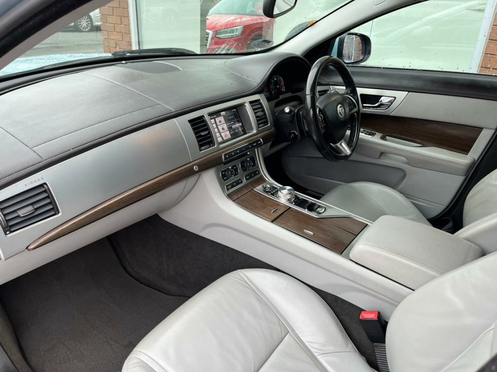 This 2013 Jaguar XF d Luxury offers a refined driving experience with its powerful 2.2 litre diesel engine, delivering an impressive 0-60mph acceleration in just 8.2 seconds. This particular model, presented in Luxury trim, comes equipped with a Cold Climate Pack, ensuring comfort with heated seats, and benefits from Bluetooth connectivity for seamless phone integration. Navigating tight spaces is made easier with front parking sensors and a rear camera, while automatic headlights and LED signature lights with daytime running functionality enhance both safety and visibility.The Jaguar XF d Luxury provides ample practicality, boasting a large boot space perfect for luggage or shopping. The inclusion of features like heated seats and advanced parking aids demonstrates how this vehicle offers a superior level of comfort and convenience compared to other similar models on the market. Its smooth acceleration and sophisticated design make it a compelling choice for those seeking a premium saloon.. 12V Power Socket - Rear - Luggage Compartment, 17in Alloy Wheels - Ursa, 3-Flash Lane Change Indicators, 3.5mm Stereo Auxiliary Input Socket, 7in Colour Touch Screen Display, ABS - Anti-locking Braking System, ASL - Automatic Speed Limiter, Acoustic Layer Windshield, Airbags - Driver, Airbags - Front Side, Airbags - Passenger, Airbags - Side Curtain, Approach Illumination - Automatic via Remote, Audio Equipment - Jaguar Sound System 250W-Radio-CD-MP3, Automatic Headlight On, Automatic Headlight Washers, Auxiliary Heater, Auxiliary Power Point in Rear, Bluetooth Connectivity, Brake Pad Wear Indicator, Chrome Grille with Chrome Surround, Cruise Control, DAB Radio Receiver, Deep Wheel Well Inner Under Boot Floor, Diesel Misfuelling Protection Device, Door Mirrors - Electric Adjustment-Heated with Side Repeaters, Driver Information Centre with Dual Function Trip Computer, Driver and Front Passenger Sun Visors with Illuminated Vanity Mirrors, Driver and Passenger Electric Seat Height Adjustment, Drivers Foot Rest, Dual Zone Automatic Climate Control, EBA - Emergency Brake Assist, EBD - Electronic Brake-Force Distribution, EPB - Electronic Parking Brake - Drive Away Release, Electric Windows, Electrical Tailgate Release, Front Centre Console with Storage Compartment and Twin Cupholders, Front Courtesy Footwell Lights, Front Media Interface, Front Seats - Whiplash Reduction System, Hazard Lights Under Heavy Braking, Head Restraint - Rear Centre, Headlights - Automatic Levelling, Headlights - LED Signature Lights with Daytime Running, Headlights - Xenon, Heated Rear Window with Timer, ISOFIX Anchor Points for Rear Child Seat, Interior Mood Lighting - Phosphor Blue Halo Illumination, Interior Rear View Mirror - Manual Dipping, Jaguar Tyre Repair System, JaguarDrive Control with Sport and Winter Mode, JaguarDrive Selector, JaguarSense - Overhead Light Console, LED Tail Lights, Loadspace Cover Lifts with Tailgate, Loadspace LED Lighting, Loadspace Track System with Tie Downs, One Piece Opening Tailgate, Passive Suspension, Pedestrian Contact Sensing and Deployable Bonnet, Power Open-Close Tailgate, Privacy Glass, Quick Rear Seat Fold from Inside Tailgate, Rain Sensing Windscreen Wipers, Rear Coat Hooks, Rear Parking Aid with Touch Screen Visual Indicator, Rear Spoiler - Body Coloured, Remote Control Boot Release, Remote Control Central Locking with Dead Locking and Drive-Away Locking, Remote Controls for Audio System, Roof Rails - Flush, Satellite Navigation, Satin Rosewood Veneer, Seats - Electric Driver-Passenger Adjustment - 6x6 Way, Seats - Front - Back Map Pockets, Seats - Rear Centre Armrest, Seats - Rear Folding - 60/40 split, Security System, Self-Levelling Rear Suspension, Servotronic Steering, Single Elliptical Tailpipe, Soft close tailgate latching, Speakers x10, Stainless Steel Rear Sill Protector, Steering Column - Electric Adjustment for Height and Reach with Entry and Exit Tilt-Away, Steering Wheel - 3-Spoke-Leather-Shift Paddles, TFT Message Centre, Tailgate Privacy Glass, Tailgate Wash/Wipe System, Tailored Instrument Panel - Bond Grain Stitched and Door Top Rolls, Trac DSC - Dynamic Stability Control with 3 Setting Levels, Traction Control, Trailer Sway Mitigation, Twin Cupholders in Rear Seat Centre Armrest, Two Front/One Rear Auxiliary Sockets, Under Floor Stowage Compartment, XF Badge, Parking Aid - Front with Rear Camera, Bond Grain Leather - Dove, Cold Climate Pack. Full service history