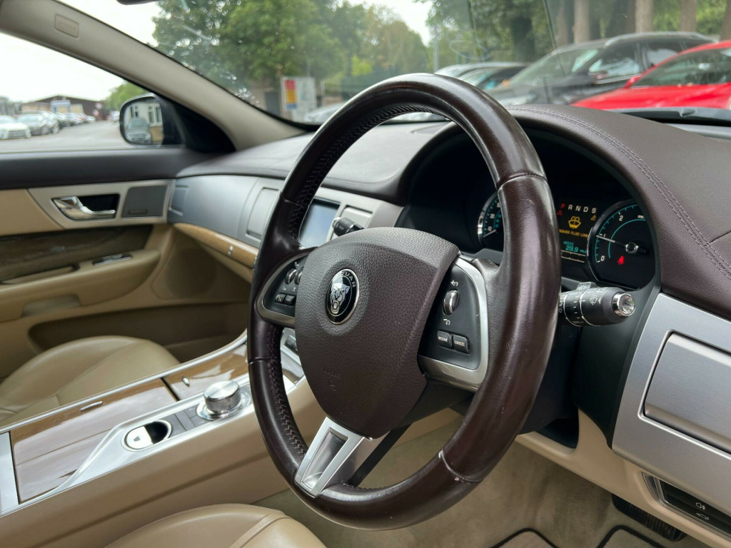 This 2014 Jaguar XF d Premium Luxury presents an exceptional opportunity with its remarkably low mileage of just 49,533 miles, complemented by a full service history.  As a d Premium Luxury model, it boasts a refined 2.2 litre diesel engine, ensuring a smooth and efficient driving experience.  The vehicle is equipped with an impressive Meridian Surround Audio System, delivering 825W of premium sound, and features adaptive front lighting with cornering lights for enhanced visibility.  Inside, you'll find 18 inch Manra alloy wheels and 12 way electric adjustment for both the driver and passenger seats, including driver memory settings, all managed through an integrated multimedia system.The Jaguar XF d Premium Luxury offers a compelling blend of performance and practicality. Its acceleration from 0 to 60mph in just 8.2 seconds indicates a responsive drive, outperforming many vehicles in its class. Furthermore, the generous boot space provides ample room for luggage or shopping, making it a versatile choice for everyday use. With 12 months MOT provided on purchase, this Jaguar XF is ready for its next owner to enjoy its sophisticated features and comfortable ride.. 12V Power Socket - Rear - Luggage Compartment, 18in Alloy Wheels - Vela, 3.5mm Stereo Auxiliary Input Socket, 7in Colour Touch Screen Display, ABS - Anti-locking Braking System, ASL - Automatic Speed Limiter, Acoustic Layer Windshield, Airbags - Driver, Airbags - Front Side, Airbags - Passenger, Airbags - Side Curtain, Approach Illumination - Automatic via Remote, Audio Equipment - Meridian Audio System 380W-Radio-CD-MP3, Auto-Dimming Interior Rear View Mirror, Automatic Headlight On, Automatic Headlight Washers, Auxiliary Heater, Auxiliary Power Point in Rear, Bluetooth Connectivity, Brake Pad Wear Indicator, Carpet Mat Set - Font and Rear, Chrome Grille with Chrome Surround, Chrome Side Window Surround, Cruise Control, DAB Radio Receiver, Deep Wheel Well Inner Under Boot Floor, Door Mirrors - Electric Adjustment-Heated-Auto Dimming-Powerfolding-Side Repeaters, Driver and Front Passenger Sun Visors with Illuminated Vanity Mirrors, Driver and Passenger Electric Seat Height Adjustment, Drivers Foot Rest, Dual Zone Automatic Climate Control, EBA - Emergency Brake Assist, EBD - Electronic Brake-Force Distribution, EPB - Electronic Parking Brake - Drive Away Release, Electric Windows, Electrical Tailgate Release, Front Centre Console with Storage Compartment and Twin Cupholders, Front Courtesy Footwell Lights, Front Media Interface, Front Seats - Whiplash Reduction System, Head Restraint - Rear Centre, Headlights - Automatic Levelling, Headlights - LED Signature Lights with Daytime Running, Headlights - Xenon, Headlining - Morzine - Dove Grey, Heated Front Seats, Heated Rear Window with Timer, ISOFIX Anchor Points for Rear Child Seat, Interior Mood Lighting - Phosphor Blue Halo Illumination, Jaguar Smart Key System with Keyless Entry, Jaguar Tyre Repair System, JaguarDrive Control with Sport and Winter Mode, JaguarSense - Overhead Light Console, LED Tail Lights, Loadspace Cover Lifts with Tailgate, Loadspace LED Lighting, Loadspace Track System with Tie Downs, Lumbar Support - Driver/2 Way Power, Memory Function with 2 Settings for Seat - Exterior Mirrors and Steering Column, One Piece Opening Tailgate, Passive Suspension, Pedestrian Contact Sensing and Deployable Bonnet, Power Open-Close Tailgate, Privacy Glass, Quick Rear Seat Fold from Inside Tailgate, Rain Sensing Windscreen Wipers, Rear Coat Hooks, Rear Parking Aid with Touch Screen Visual Indicator, Remote Control Boot Release, Remote Control Central Locking with Dead Locking and Drive-Away Locking, Remote Controls for Audio System, Roof Rails - Flush, Satellite Navigation, Seats - Electric Driver/Passenger Adjustment - 10x6 Way with Memory, Seats - Front - Back Map Pockets, Seats - Rear Centre Armrest, Seats - Rear Folding - 60/40 split, Security System, Self-Levelling Rear Suspension, Servotronic Steering, Soft close tailgate latching, Speakers x11 including 1 Subwoofer, Stainless Steel Rear Sill Protector, Steering Column - Electric Adjustment for Height and Reach with Entry and Exit Tilt-Away, Steering Wheel - 3-Spoke-Leather-Shift Paddles, TFT Message Centre, Tailgate Privacy Glass, Tailgate Wash/Wipe System, Tailored Instrument Panel - Soft Grain Leather Stitched, Trac DSC - Dynamic Stability Control with 3 Setting Levels, Traction Control, Trailer Sway Mitigation, Twin Cupholders in Rear Seat Centre Armrest, Two Front/One Rear Auxiliary Sockets, Under Floor Stowage Compartment, Veneer - Rich Oak, Windscreen - Heated with Timer, Parking Aid - Front with Rear Camera, Multimedia System, Audio Equipment - Meridian Surround Audio System 825W-Radio-CD-MP3, Headlights - Adaptive Front Lighting-Cornering Lights-Automatic Levelling, 18in Alloy Wheels - Manra, Side Power Vents - Chrome and Mesh, Seats - Electric Driver/Passenger Adjustment - 12x12 Way with Driver Memory. Full service history