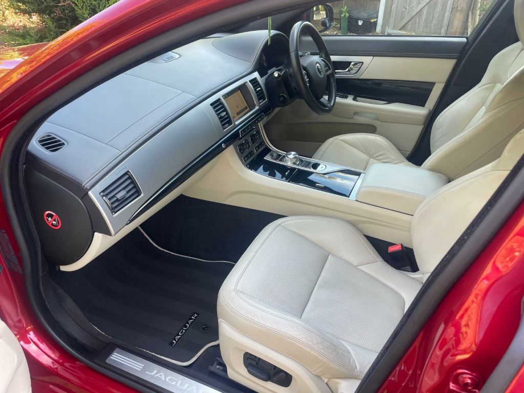 THIS AMAZING LOOKING TOP OF THE RANGE JAGUAR XF 3.0D S V6 PORTFOLIO SPORTBRAKE ESTATE COMES IN Italian Racing Red Metallic WITH CLIMATE CONTROLLED HEATED AND COOLED Ivory leather seats. IT REALLY STANDS OUT WITH ITS 20 Black Kalimnos Alloy Wheels. IT COMES WITH SERVICE HISTORY, SERVICED 8 TIMES IN TOTAL, INCLUDING A CAMBELT REPLACEMENT. Excellent bodywork, Beige Full leather interior - Excellent Condition, 5 seats, Italian Racing Red Metallic, 2 owners, Upgrades - Special Paint / Race Inspired Paint £650, 20in Alloy Wheels - Kalimnos - Gloss Black Finish, Premium Headlining - Suedecloth - Canvas, Gloss Black Boot Lid Finisher (Rear Signature Blade), Ivory leather seats, Standard Features - 12V Power Socket - Rear - Luggage Compartment, 20in Alloy Wheels - Hydra, 3.5mm Stereo Auxiliary Input Socket, 7in Colour Touch Screen Display, ABS - Anti-locking Braking System, ASL - Automatic Speed Limiter, Acoustic Layer Windshield, Adaptive Dynamics, Airbags - Driver, Airbags - Front Side, Airbags - Passenger, Airbags - Side Curtain, Approach Illumination - Automatic via Remote, Audio Equipment - Meridian Surround Audio System 825W-Radio-CD-MP3, Auto-Dimming Interior Rear View Mirror, Automatic Headlight On, Automatic Headlight Washers, Auxiliary Heater, Auxiliary Power Point in Rear, Black Grille with Chrome Surround, Bluetooth Connectivity, Brake Pad Wear Indicator, Bright Finish Stainless Steel Pedals, Cruise Control, DAB Radio Receiver, Deep Wheel Well Inner Under Boot Floor, Door Mirrors - Electric Adjustment-Heated-Auto Dimming-Powerfolding-Side Repeaters, Driver and Front Passenger Sun Visors with Illuminated Vanity Mirrors, Driver and Passenger Electric Seat Height Adjustment, Drivers Foot Rest, Dual Zone Automatic Climate Control, EBA - Emergency Brake Assist, EBD - Electronic Brake-Force Distribution, EPB - Electronic Parking Brake - Drive Away Release, Electric Windows, Electrical Tailgate Release, Front Centre Console with Storage Compartment and Twin Cupholders, Front Courtesy Footwell Lights, Front Media Interface, Front Seats - Whiplash Reduction System, Head Restraint - Rear Centre, Headlights - Automatic Levelling, Headlights - LED Signature Lights with Daytime Running, Headlights - Xenon, Heated Rear Window with Timer, ISOFIX Anchor Points for Rear Child Seat, Interior Mood Lighting - Phosphor Blue Halo Illumination, Jaguar Smart Key System with Keyless Entry, JaguarDrive Control with Dynamic Mode, JaguarDrive Control with Sport and Winter Mode, JaguarSense - Overhead Light Console, LED Tail Lights, Loadspace Cover Lifts with Tailgate, Loadspace LED Lighting, Loadspace Track System with Tie Downs, Memory Function with 2 Settings for Seat - Exterior Mirrors and Steering Column, One Piece Opening Tailgate, Pedestrian Contact Sensing and Deployable Bonnet, Power Open-Close Tailgate, Premium Carpet Mat Set - Front and Rear, Premium Headlining - Suedecloth Jet, Privacy Glass, Quick Rear Seat Fold from Inside Tailgate, Rain Sensing Windscreen Wipers, Rear Coat Hooks, Rear Parking Aid with Touch Screen Visual Indicator, Rear Spoiler - Body Coloured, Rear Valance, Remote Control Boot Release, Remote Control Central Locking with Dead Locking and Drive-Away Locking, Remote Controls for Audio System, Roof Rails - Flush, S Badge, Satellite Navigation, Seats - Electric Driver/Passenger Adjustment 18x18 Way with Driver Memory, Seats - Front - Back Map Pockets, Seats - Front Heated and Cooled, Seats - Ivory, Seats - Rear Centre Armrest, Seats - Rear Folding - 60/40 split, Security System, Self-Levelling Rear Suspension, Servotronic Steering, Soft close tailgate latching, Spare Wheel - 18in Alloy Space Saver - Non-Supercharged Derivatives, Speakers x11 including 1 Subwoofer, Stainless Steel Rear Sill Protector, Steering Column - Electric Adjustment for Height and Reach with Entry and Exit Tilt-Away, Steering Wheel - 3-Spoke-Leather-Shift Paddles, TFT Message Centre, Tailgate Privacy Glass, Tailgate Wash/Wipe System, Tailored Instrument Panel - Soft Grain Leather Stitched with Contrast Stitching, Trac DSC - Dynamic Stability Control with 3 Setting Levels, Traction Control, Trailer Sway Mitigation, Twin Cupholders in Rear Seat Centre Armrest, Two Front/One Rear Auxiliary Sockets, Under Floor Stowage Compartment, Veneer - Piano Black, Window Surrounds - Gloss Black Finish, Windscreen - Heated with Timer, ALL CARS COME WITH WARRANTY, FINANCE AND PART EXCHANGES WELCOME, ALL VIEWINGS BY APPOINTMENT, £10795