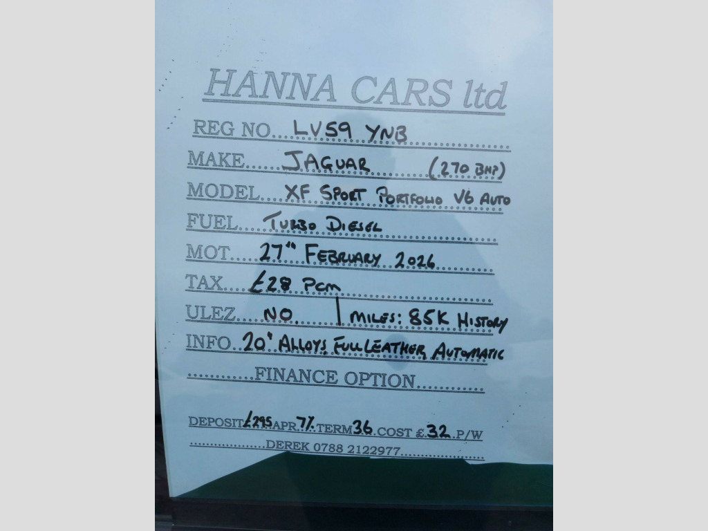 JAGUAR XF PORTFOLIO 3ltr V6 AUTO, , 59 REG,DIAMOND BLACK PAINT WITH ONLY 85K MILES FROM NEW,SERVICE HISTORY,20 ALLOY WHEELS,2 KEYS SUPPLIED,AUTOMATIC GEARBOX,35+ MPG,, TRADE-IN CAR FROM MATURE GENTLEMAN, , FINANCE AVAILABLE