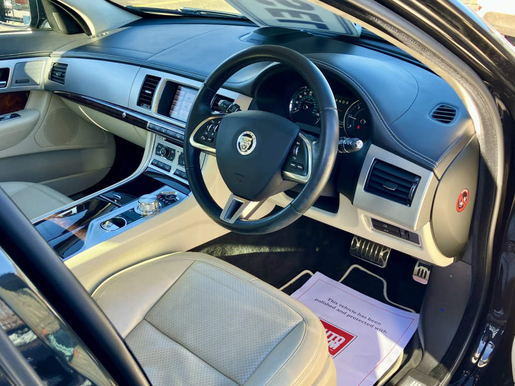 BEAUTIFUL CONDITION JAGUAR XF 3.0 V6 S PORTFOLIO WITH FULL SERVICE HISTORY WITH EVERY BILL INCLUDING TIMING BELT CHANGE . ONLY 1 FORMER KEEPER FROM BRAND NEW!!, 2KEYS , , THE IMPRESSIVE SPECIFICATION LIST INCLUDES:, PIRELLI P ZERO TYRES ALL ROUND, HEATED AND COOLED SEATS , ELECTRIC SOFT NAPPA LEATHER SEATS WITH MEMORY FUNCTION.. ELECTRIC ADJUSTABLE STEERING COLUMB. DAB/DVD/TV , 20 ALLOY WHEELS, KEYLESS GO, ADAPTIVE CRUISE WITH BRAKE FUNCTION…, , LED DRLS, LANE DEPARTURE ASSIST, HEATED POWER FOLD MIRRORS , SATELLITE NAVIGATION- DAB RADIO, UPGRADED MERIDIAN PREMIUM SOUND SYSTEM, STOP/START SYSTEM, FULL CREAM ELECTRIC LEATHER HEATED & COOLED SEATS WITH MEMORY FUNCTION AND LUBER SUPPORT.. ALCANTARA HEADLINING, HEATED WASHER JETS, PDC FRONT AND REAR WITH COLOUR CAMERA,, BLUETOOTH, MEDIA, USB, AUX, VIDEO CONNECTION, AUTO WIPERS- AUTO LIGHTS- ADAPTIVE CRUISE CONTROL, DUEL CLIMATE, SPORT/RACE MODES, AMBIET LIGHTING, ALUMINIUM PACK, PUDDLE LIGHTS, AUTO BOOT RELEASE- HILL ASSIST- MULTIFUNCTION STEERING WHEEL- POWER FOLD HEATED MIRRORS PLUS MUCH MORE!!, , SUPPLIED WITH 6 MONTHS WARRANTY AND 12 MONTHS MOT & FREE ROADSIDE ASSISTANCE. , ***************LOW RATE FINANCE AVAILABLE **********