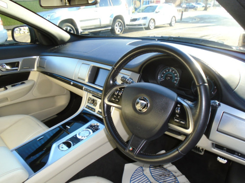 Stunning XF SPORTBRAKE S Premium luxury X250 3.0D V6 twin turbo High spec S model finished in STRATUS GREY with Ivory hide , R upgrade body styling,CHEAPER RFL..8 Speed auto, nice low mileage,full documented service history, Gloss black 20 Alloys with S handling pack inc red calipers,extended R body kit,big brakes,rear diffuser,Black pack, contrasting Ivory hide with piano black wood, full spec amazing power being the S model, amazing performance and economy returning 50mpgHeated and cooled electric memory seats,meridian sound upgrade,winter pack so heated seats,front and rear screens and door mirrors,power fold mirrors, front and rear PDC with rear camera,upgraded audio,touch screen navigation,power tailgate, electric column adj,2 keys load space cover and boot protector rounds off this stunning example with nice LOW MILEAGE EXCELLENT SERVICE HISTORY RUNNING TO 7 STAMPS too.