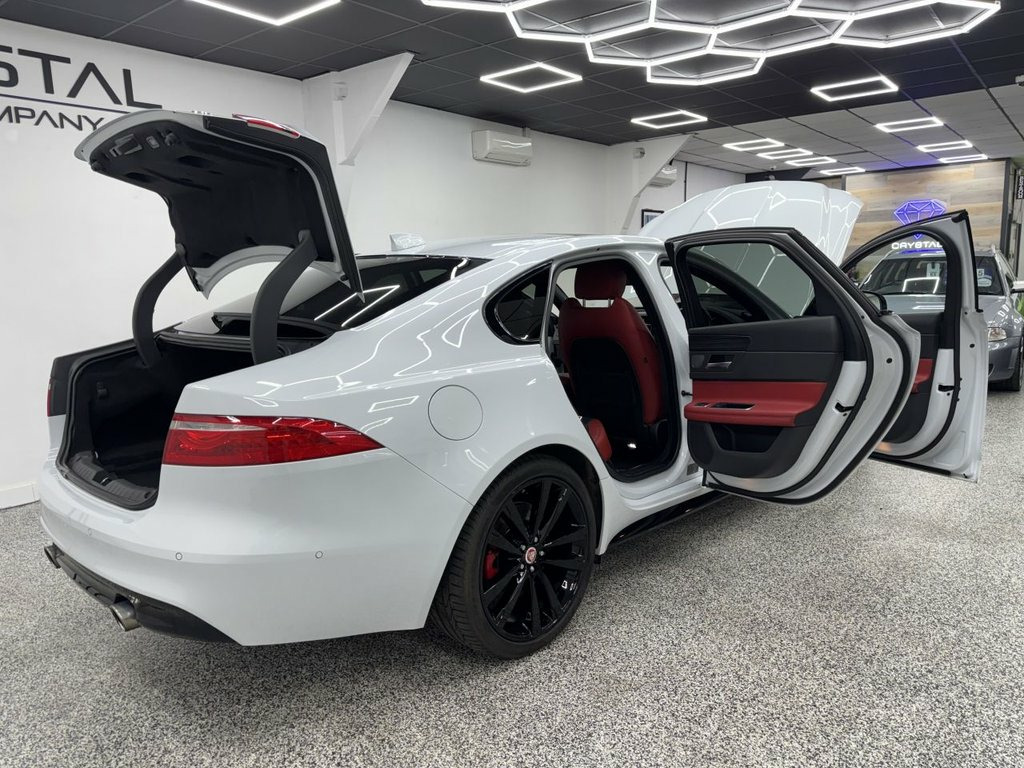 Crystal motor company are delighted to offer for sale this beautifully presented 2016 JAGUAR XF 3.0 V6 S Saloon 4dr Petrol Auto Euro 6 (s/s) (380 ps) finished in GLACIER WHITE. This car comes with TWO KEYS, TWO FORMER KEEPERS, JAGUAR SERVICE HISTORY. This car is equipped with 20" ALLOY WHEELS, RED BRAKE CALLIPERS, FRONT AND REAR PARKING SENSORS, REAR REVERSING CAMERA, ELECTRIC REAR TAILGATE, ELECTRIC FOLDING WING MIRRORS, BLIND SPOT ASSIST, OPENING SUNROOF, HEATED WINDSCREEN, TWO TONE BLACK AND RED LEATHER SEATS, ELECTRIC MEMORY FRONT SEATS, HEATED FRONT SEATS, PADDLE SHIFT, CRUISE CONTROL, HEADS UP DISPLAY, MERIDIAN SOUND SYSTEM, AMBIENT LIGHTING (10 COLOUR CHOICE), DAB RADIO, BLUETOOTH AUDIO, BLUETOOTH PHONE CONNECTION, SATNAV. The car is 100% HPi clear. Part exchange and finance are available and all major credit and debit cards accepted. Crystal Motor Company Ltd Used Programme includes a full PDI inside and out, MOT, mileage certificate and a full inside and out valet. You can request a personalised video with attention given to any specifics you would like a better view of and we will be pleased to assist you. Likewise, we offer our customers a free collection service. Our journey began in 1996 with the aim to deliver the best possible customer experience, you will enjoy a completely hassle free approach, no pressure and great prices, values we stand by to this day. Looking to finance your next car? We have over 30 lenders on board to help each customer with thei 10-Way Electric Front Seats, 12V Power Sockets, 14x14 Way Seat Memory Pack with Powerfol, 1x USB Socket, 2-Zone Climate Control, 20in Alloy Wheels - Venom 5 Twin-Spoke w, 3 Rear Headrests, 3-Flash Lane Change Indicators, 350mm Brakes, 4-Way Electric Lumbar Adjust, 40-20-40 Split Fold Rear Seat, 8in Capacitive Touchscreen, ABS - Anti-locking Braking System, Acoustic Layer Windshield, Adaptive Dynamics, AEB - Autonomous Emergency Braking, Airbags - Driver and Front Passenger wit, Airbags - Front Side, Airbags - Full Length Side Window Curtai, AM-FM Radio, Analogue Dials with 5in Full Colour TFT , Approach Illumination, ASPC - All Surface Progress Control, Audio AUX In, Auto-Dimming - Power Fol