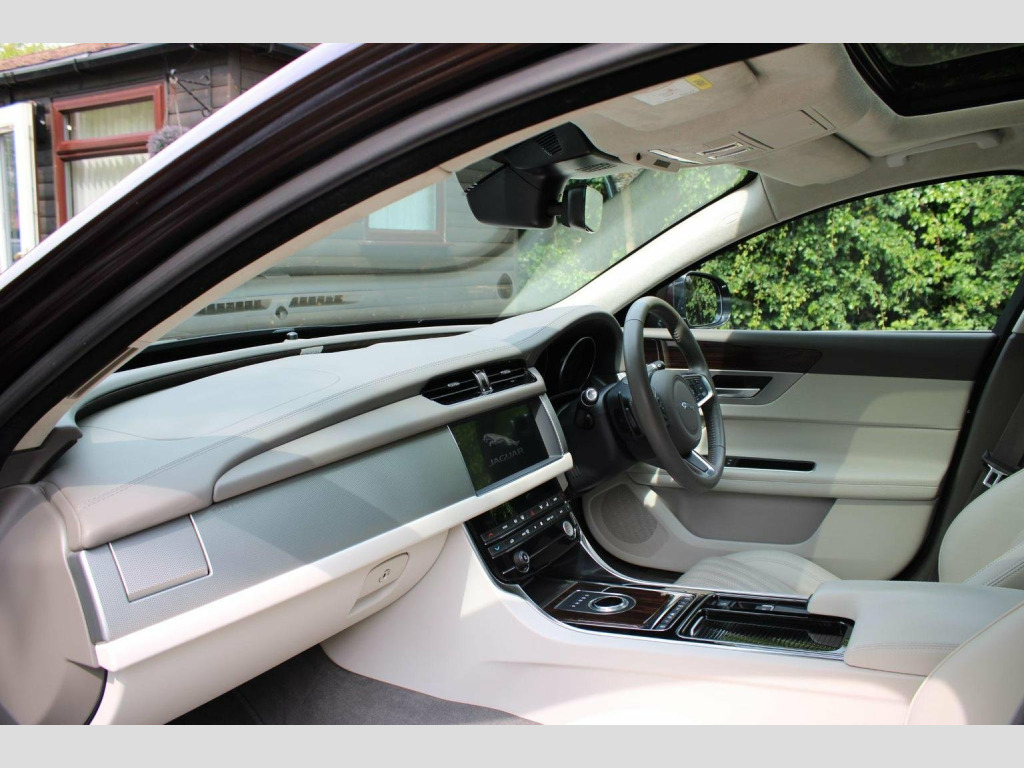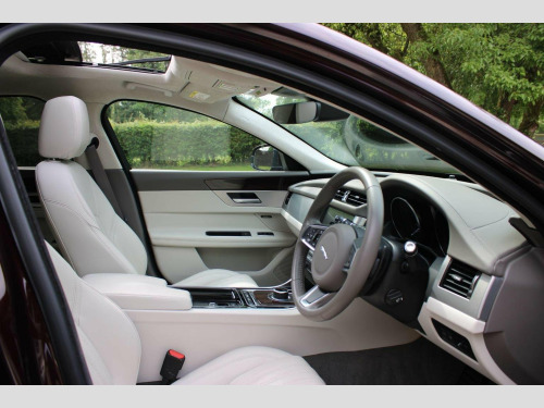 We are delighted to offer this very well presented XF in rosello red with light oyster full leather. Specification includes tilt and slide opening glass panoramic sunroof with retractable sunblind, touch pro sat nav, dab radio, apple car play, meridian sound system, bluetooth, climate control, heated electric seats, rear view camera, parking sensors front and rear, heated windscreen, cruise control, ambient lighting, speed limit display, lane departure warning, folding mirrors, auto lights and wipers, auto dimming interior mirror, folding rear seats, rear privacy glass and 19 alloy wheels. Full service history and 2 x keys present. Call or visit our website for a finance quote (subject to status) No admin fees are charged. We specialise in privately owned high specification vehicles and endeavour to buy the best examples of the marques we sell. Old fashioned service with up to date product knowledge. 30 years of successful selling please check out our 5 Star reviews and buy with confidence.