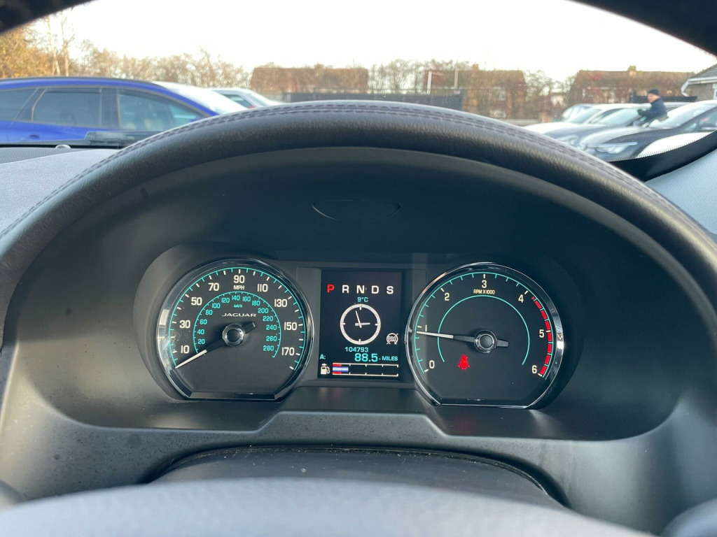 ZERO DEPOSIT FINANCE AVAILABLE, 6 MONTHS NATIONWIDE WARRANTY, 12 Months Free AA Breakdown Cover, Hpi Clear, 2 keys, all previews MOTs available, we are located at CANVEY ROAD, CANVEY ISLAND, ESSEX, SS8 0QD,. 12V Power Socket - Rear - Luggage Compartment, 18in Alloy Wheels - Vela, 3.5mm Stereo Auxiliary Input Socket, 7in Colour Touch Screen Display, ABS - Anti-locking Braking System, ASL - Automatic Speed Limiter, Acoustic Layer Windshield, Airbags - Driver, Airbags - Front Side, Airbags - Passenger, Airbags - Side Curtain, Approach Illumination - Automatic via Remote, Audio Equipment - Meridian Audio System 380W-Radio-CD-MP3, Auto-Dimming Interior Rear View Mirror, Automatic Headlight On, Automatic Headlight Washers, Auxiliary Heater, Auxiliary Power Point in Rear, Bluetooth Connectivity, Brake Pad Wear Indicator, Carpet Mat Set - Font and Rear, Chrome Grille with Chrome Surround, Chrome Side Window Surround, Cruise Control, DAB Radio Receiver, Deep Wheel Well Inner Under Boot Floor, Door Mirrors - Electric Adjustment-Heated-Auto Dimming-Powerfolding-Side Repeaters, Driver and Front Passenger Sun Visors with Illuminated Vanity Mirrors, Driver and Passenger Electric Seat Height Adjustment, Drivers Foot Rest, Dual Zone Automatic Climate Control, EBA - Emergency Brake Assist, EBD - Electronic Brake-Force Distribution, EPB - Electronic Parking Brake - Drive Away Release, Electric Windows, Electrical Tailgate Release, Front Centre Console with Storage Compartment and Twin Cupholders, Front Courtesy Footwell Lights, Front Media Interface, Front Seats - Whiplash Reduction System, Head Restraint - Rear Centre, Headlights - Automatic Levelling, Headlights - LED Signature Lights with Daytime Running, Headlights - Xenon, Headlining - Morzine - Dove Grey, Heated Front Seats, Heated Rear Window with Timer, ISOFIX Anchor Points for Rear Child Seat, Interior Mood Lighting - Phosphor Blue Halo Illumination, Jaguar Smart Key System with Keyless Entry, Jaguar Tyre Repair System, JaguarDrive Control with Dynamic Mode, JaguarDrive Control with Sport and Winter Mode, JaguarSense - Overhead Light Console, LED Tail Lights, Loadspace Cover Lifts with Tailgate, Loadspace LED Lighting, Loadspace Track System with Tie Downs, Lumbar Support - Driver/2 Way Power, Memory Function with 2 Settings for Seat - Exterior Mirrors and Steering Column, One Piece Opening Tailgate, Passive Suspension, Pedestrian Contact Sensing and Deployable Bonnet, Power Open-Close Tailgate, Privacy Glass, Quick Rear Seat Fold from Inside Tailgate, Rain Sensing Windscreen Wipers, Rear Coat Hooks, Rear Parking Aid with Touch Screen Visual Indicator, Remote Control Boot Release, Remote Control Central Locking with Dead Locking and Drive-Away Locking, Remote Controls for Audio System, Roof Rails - Flush, Satellite Navigation, Seats - Electric Driver/Passenger Adjustment - 10x6 Way with Memory, Seats - Front - Back Map Pockets, Seats - Rear Centre Armrest, Seats - Rear Folding - 60/40 split, Security System, Self-Levelling Rear Suspension, Servotronic Steering, Soft close tailgate latching, Speakers x11 including 1 Subwoofer, Stainless Steel Rear Sill Protector, Steering Column - Electric Adjustment for Height and Reach with Entry and Exit Tilt-Away, Steering Wheel - 3-Spoke-Leather-Shift Paddles, TFT Message Centre, Tailgate Privacy Glass, Tailgate Wash/Wipe System, Tailored Instrument Panel - Soft Grain Leather Stitched, Trac DSC - Dynamic Stability Control with 3 Setting Levels, Traction Control, Trailer Sway Mitigation, Twin Cupholders in Rear Seat Centre Armrest, Two Front/One Rear Auxiliary Sockets, Under Floor Stowage Compartment, Veneer - Rich Oak, Windscreen - Heated with Timer.