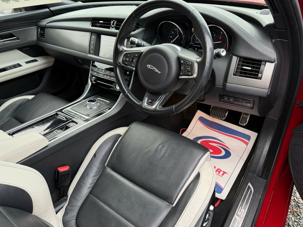 The Jaguar XF will appeal to buyers who value the driving experience and strive to stand out from those that buy the German premium brands in droves. It's great to drive and efficient enough to justify to yourself and your bank manager, the XF is one of the most appealing executive saloons we can think of. It's roomy and well equipped, few can match the XF for feel-good factor behind the wheel. Reasons to buy - Brilliant fun to drive, Sensible running costs, Spacious cabin, Stylish looks, Interior has the wow factor. Finished in a beautiful Firenze Red metallic we have this beautiful Jaguar XF 3.0d V6 S Saloon covering 105k genuine miles from new. The vehicle has factory fitted extras. The vehicle has been very well maintained, it looks the part and drives just as well as it looks. We have 2 fully functioning keys, A great service history record with a total of 10 services carried out at 5k, 6k, 14k, 29k, 52k, 60k, 73k, 95k, 100k and most recent completed by ourselves at 105k . We will also be putting a new fresh MOT on the vehicle with' NO Advisories' present. Looking inside and the wow factor continues.The trim level is very comfortable indeed with Full perforated Leather upholstery with the front seats benefit from being heated seats and the rear seats are 40-20-40 split folding and has ISOFIX for the rear. DAB radio, satellite navigation and bluetooth connectivity with media streaming complemented with a great powerful sound system. The vehicle is lo Perforated Taurus Leather - Light Oyster, Italian Racing Red, 2 Additional Power Sockets, Suedecloth Headlining, Steering Column - Electrically Adjustabl, Lane Keep Assist and Driver Condition Mo, InControl Secure, 360 Degree Parking Aid, Privacy Glass, 20in Alloy Wheels - Venom 5 Twin-Spoke w, 10-Way Electric Front Seats, 12V Power Sockets, 19in Alloy Wheels - Razor 7 Twin-Spoke w, 1x USB Socket, 2-Zone Climate Control, 3 Rear Headrests, 3-Flash Lane Change Indicators, 350mm Brakes, 4-Way Electric Lumbar Adjust, 40-20-40 Split Fold Rear Seat, 8in Capacitive Touchscreen, ABS - Anti-locking Braking System, AEB - Autonomous Emergency Braking, AM-FM Radio, ASPC - All Surface Progress Control, A