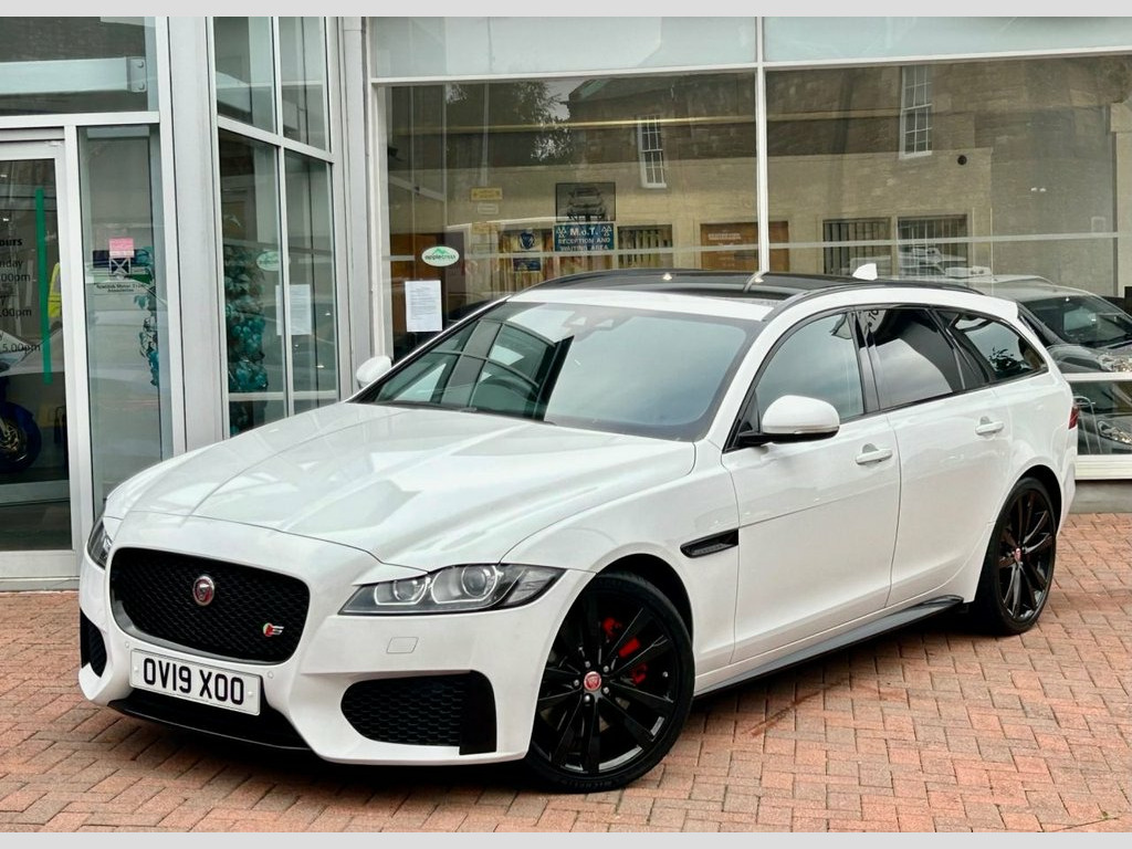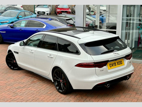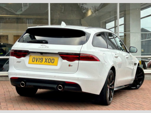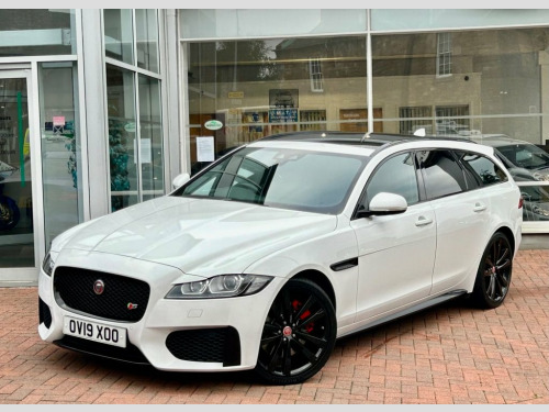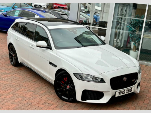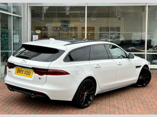 A Rare Find! A 3.0 Litre S Model Sportbrake, in Great Condition and with Just 2 Owners (Jaguar + One Private Owner) from new - Our Jaguar is presented in Fuji White with Exterior Black Pack, Black Perforated Leather upholstery, Alcantara Headlining and 20 Inch, Gloss Black 'Split Spoke' Alloy Wheels. Trim Level is Fabulous and includes a Full Length Panoramic Roof, Touch screen navigation, Apple Car Play and Android Auto, Bluetooth and Multi-media connectivity, a Meridian music system, 3 Stage seat heating (Front and Rear), a Heated Steering Wheel, Heated windscreen, Electric, Heated and Power-folding mirrors, Electric seat adjustment with Driver Memory Pack, Climate control, Cruise control, Front and Rear Parking Sensors, a Reverse angle camera, Power Operated Tailgate and Factory privacy glass. Supplied with 2 Keys and Service confirmation at 26681m, 32031m, 38555m, 44033m, 51129m and 57665 miles 20in Alloy Wheels - 5 Split-Spoke Style , Black Pack, Driver Memory Pack with Power Fold Mirro, Fixed Panoramic Roof, Gloss Black Trim Finisher, Heated Front and Rear Seats, Heated Steering Wheel, Interactive Driver Display, Powered Tailgate, Privacy Glass