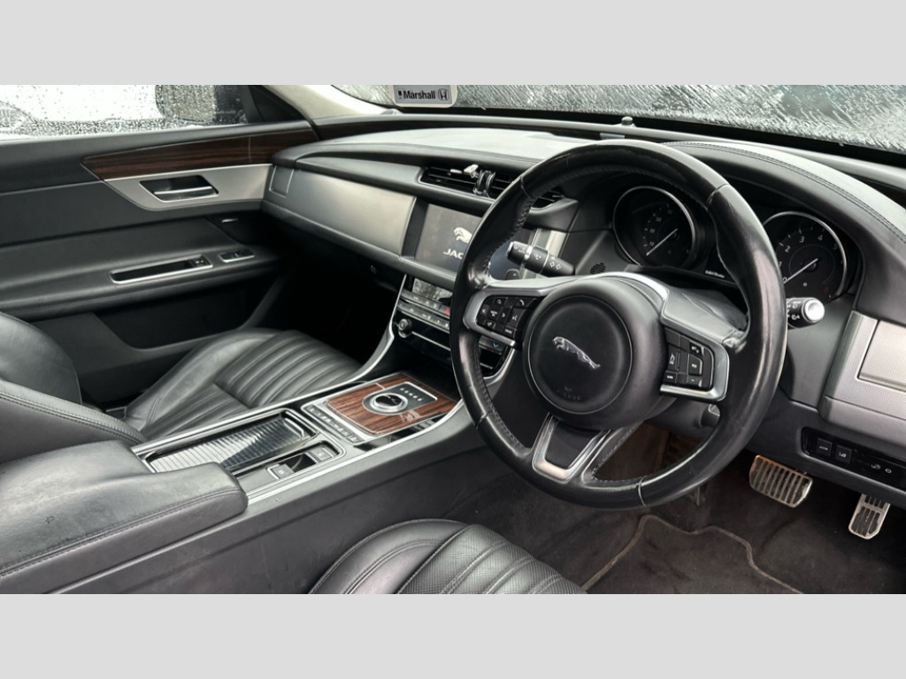 Jaguar XF 2.0i Portfolio 5dr Auto Analogue dials with 7" central TFT display, Bluetooth telephone connectivity, Electric power steering, Forward facing stereoscopic camera, Front parking aid, InControl remote premium, Instrument cluster with 5 TFT display, Jaguar Voice front, Lane departure warning system, Outside temperature gauge, Pro services and wifi hotspot, Rear parking aid, Service interval indicator, Traffic sign recognition with adaptive speed limiter, Trip computer, 8 speed automatic transmission, Self levelling rear air suspension, Bluetooth audio streaming, DAB Radio (Digital Audio Broadcasting), InControl app, InControl protect, InControl Wi-fi, USB and auxiliary socket, Acoustic windscreen, Approach lamps, Auto dimming rear view mirror, Automatic headlights, Blue tinted glass, Body colour door mirrors, Boot mounted spoiler, Chrome side vents, Chrome tailgate/boot lid finisher, Chrome window side surrounds, Electric front/rear windows with one touch/auto up/down, Frameless auto dimming interior rear view mirror, Headlight power wash, Heat insulated glass, Heated front windscreen, Heated rear window, Illuminated metal tread plates with Jaguar script, LED tail lights, Metal load space scuff plates, Rain sensor windscreen wipers, Rear wash/wipe, Roof spoiler, Silver roof rails, Tailgate/boot lid spoiler, Trailer stability assist, 2nd row air vents, 3 rear seat head restraints, 4 way electric lumbar support for driver and front passenger, 40:20:40 split folding rear seats, Auxilliary 12V power socket, Bright metal foot pedals, Chrome seat switches, Chrome trunk finish, Front armrest, Front centre console storage box, Isofix child seat preparation, Jaguar sense, JaguarDrive selector, Loadspace cover, Loadspace rails, Overhead console with sunglasses holder, Perforated Windsor leather upholstery, Premium carpet mats, Rear armrest with twin cupholders, Rear storage compartment, Soft grain sport leather steering wheel, Sunvisors with illuminated vanity mirrors, Tie down hooks in luggage area, Twin front cupholders, Windsor leather wrapped instrument panel, ABS+EBA, Anti-whiplash front headrests, Autonomous emergency braking, Brake pad warning light, Driver/Front Passenger airbags, DSC - Dynamic Stability Control, Electronic parking brake, Emergency brake assist, Front and rear curtain airbags, Front/rear seatbelt pre-tensioners, Hill start assist, Pedestrian contact sensing, Power child locks, Seatbelt warning, Side airbags, Three 3 point rear seatbelts, Torque vectoring brake, Traction control, Tyre pressure monitoring system, Deadlocks, Drive away door locking, Immobiliser, Keyless entry system, Keyless start, Locking wheel nuts, Perimeter alarm, Remote central locking, Morse code aluminium instrument panel finisher