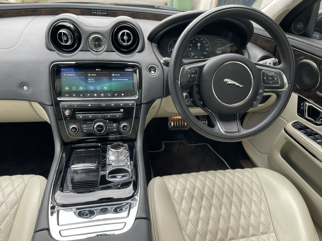 Jaguar XJ 3.0d V6 XJ50 Saloon 4dr Diesel Auto Euro 6 (s/s) (300 ps), 2019, presented in the most desirable colour combination of Santorini Black with Ivory Hide Interior. This distinguished saloon offers refined comfort and advanced features, with accommodation for five passengers across four doors. Key features include Navigation Pro System, 360 Degree Surround Camera, 4-Zone Climate Control, Keyless Entry, 20 Inch Gloss Black Diamond Alloy Wheels and Lane Keep Assist. The sophisticated interior and spacious cabin provide a comfortable environment for driver and passengers alike. This rare Jaguar XJ50 limited edition, presents an excellent opportunity to acquire a vehicle combining luxury and advanced technology in a timeless saloon body style. MOTd until 31st August 2026.