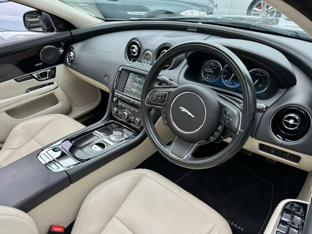 SORRY NOW SOLD!! We are pleased to be able to offer you this stunning 2015 Jaguar XJ Portfolio 3.0 Diesel finished in Stratus Grey with Ivory Leather. Covered jut 50,000 miles from new, and a Full Jaguar & Jaguar Specialist Service History and last serviced less than 3,000 miles ago by a well known Jaguar Specialist! Cam Belt replaced at 35,586 miles in December 2021. Originally owned by Jaguar for the first 2 years, and then onto its second owner who has cherished this XJ since! This Portfolio XJ comes with Heated Seats, Cooling Seats, Cruise Control, Panoramic Roof, Reversing Camera, Front & Rear Parking Sensors, Exterior Design Pack and much more! You will not find a more cherished and immaculate example for under £15,000! Due to the vast amount of vehicles we are selling, we advise you to contact the sales team prior to travelling to avoid any disappointment. We also recommend checking with ourselves the specification/data supplied by Autotrader. For anymore questions, please contact us on 01749 871155. Our opening hours are: 9am-6pm Mon-Sat & 10am-4pm on Sunday. Offered for sale by Affordable Prestige Cars, we also offer tailored finance packages and can arrange nationwide delivery to your door!, LOW DEPOSIT FINANCE AVAILABLE TODAY