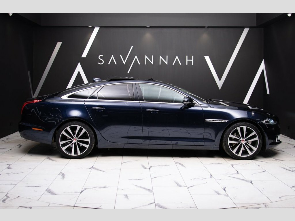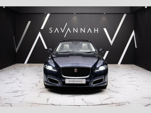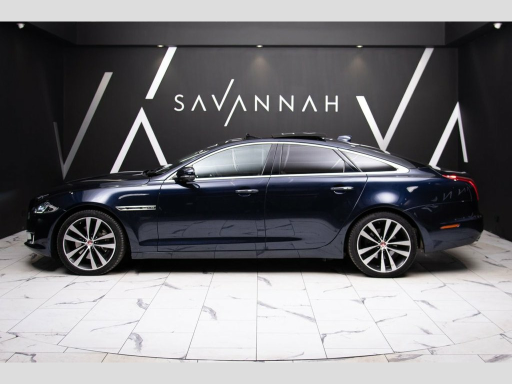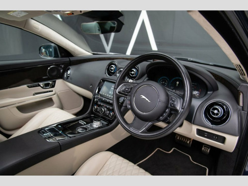 JAGUAR XJ 3.0d V6 XJ50 Saloon 4dr Diesel Auto Euro 6 (s/s) (300 ps) embodies refined luxury and commanding performance, presented here in striking Loire Blue with 20in Gloss Black Diamond Turned alloy wheels and the signature XJ50 styling touches. The cabin exudes sophistication with Perforated Quilted Soft Grain Ivory leather seats offering heating, cooling and massage functions, complemented by a Suedecloth headlining, Gloss Shadow Walnut veneer, illuminated treadplates and ambient Phosphor Blue mood lighting. A true flagship saloon, it features a Solar Attenuating Panoramic Glass Roof, four-zone climate control, heated steering wheel, soft-close doors and an Ivory headlining for a serene environment. Cutting-edge technology includes a 12.3in Virtual Information Display, 10.2in Touch Pro infotainment with Navigation Pro, InControl Apps, Wi-Fi hotspot and dual Meridian audio systems, including the 1300W Reference setup with Conversation Assist. Safety and driver assistance are equally impressive, with Adaptive LED headlights, 360-degree surround cameras, Blind Spot Monitor, Lane Keep Assist, Traffic Sign Recognition, Adaptive Dynamics and Autonomous Emergency Braking ensuring complete confidence. Completing the package are elegant exterior details such as the Gloss Black radiator grille with chrome surround, privacy glass and twin oval chrome exhaust finishers, all combining to deliver an unmistakably British expression of prestige motoring. FULL JAGUAR HISTORY | SUNROOF Perforated Quilted Soft Grain Leather - , Meridian Reference Digital Sound System , Privacy Glass, Loire Blue, 10.2in Touch Pro, 12.3in Full Colour TFT LCD Instrument Cl, 18 Way Electrically Adjustable Standard , 20in Alloy Wheels - 5 Split Spoke Style , 3-Flash Lane Change Indicators, 360 Degree Surround Camera, 4-Zone Climate Control, ABS - Anti-locking Braking System, ASL - Automatic Speed Limiter, ASPC - All Surface Progress Control, Acoustic Laminated Glass, Adaptive Dynamics, Adaptive LED Headlights with LED Signatu, Air Quality Sensing with Auto Recirculat, Airbags Front and Side - Driver and Pass, Anodised Shifter Paddles, Approach Illumination - Automatic via Re, Auto Dimming - Powe