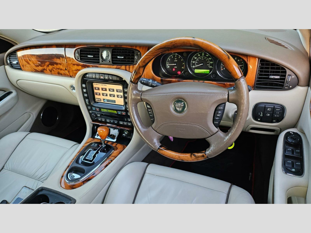 This Jaguar XJ8 Sovereign from 2005 boasts an exceptional history, having been owned by only three individuals and holding a clear vehicle history check. Under the bonnet, you'll find a powerful 4.2 litre petrol engine, delivering a refined driving experience synonymous with the Jaguar marque. This XJ8 Sovereign represents a well cared for example of this executive saloon.Experience the impressive performance of this Jaguar XJ8 Sovereign, capable of accelerating from 0 to 60 miles per hour in a swift 6.3 seconds. This quick acceleration demonstrates a level of responsiveness that sets it apart from many other vehicles in its class, offering both comfort and dynamic capability for your journeys. justable steering column/wheel, air bag driver, air bag passenger, air bag side, alarm, alloy wheels (19in), anti-lock brakes, central door locking, centre rear seat belt, climate control, cruise control, deadlocks, electric windows (front/rear), front fog lights, head air bags, head restraints, heated front screen, immobiliser, in car entertainment (radio/cd autochanger), mirrors external (electric heated/folding), paint metallic, parking aid (front/rear), power-assisted steering, satellite navigation, seat height adjustment (memory driver/passenger), seat lumbar support, seats electric (memory driver/passenger), seats heated (front/rear), spare wheel, speakers, telephone equipment, traction control system, upholstery leather, voice activated controls