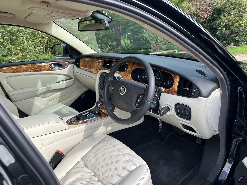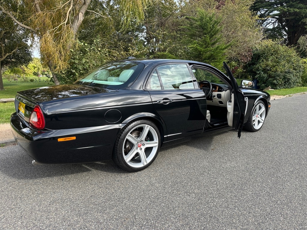 Jaguar XJR 4.2 V8 Supercharged 2008 Saloon ONLY 37000 MILES FROM NEW. UK Supplied From New. Single Ownership from 2009-2024 (15 Years) Finished in Metallic Midnight Black with Full Ivory Leather Electric Sports Seats. This Outstanding and Extremely Rare Example is One of the very few XJR Supercharged cars we have come by with nearly all factory Options that were available at this time. Factory Options Included: Colour Touch Screen Sat/Nav, Bluetooth Phone, Heated Seats, Air Con Cooled Seats, Front/Rear Park Distance Control, Multi CD, Walnut Dash Interior Pack, 20'' Jaguar Alloys, Power Fold Mirrors, Heated Front Screen, Cruise Control. Full Jaguar Dealer Specialist Service History with Service Invoices and Full MOT History. 2 Keys and Full Book Pack. Quite Simply One of the Very Finest and Ultra low Mileage XJR 4.2 V8 Supercharged Last Edition Examples Available.  UK Supplied From New car. Not One of the Japanese Imports!For more Detailed Please call or email.,