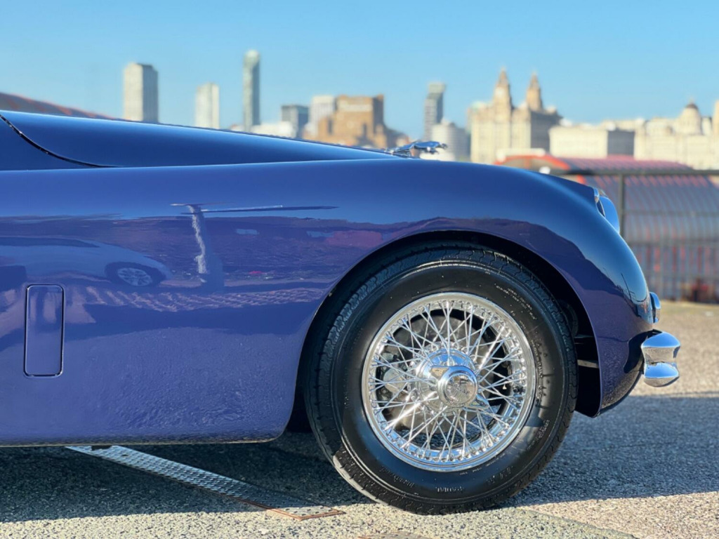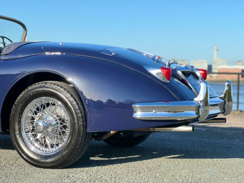 This drop dead gorgeous Jaguar XK150 roadster was supplied to Jaguar Cars New York on January 27th 1959. Little is known about the first owner, a Mr Nemeth of Baltimore, but it must have been an incredible first drive in the 3.4 Litre double overhead cam 6 cylinder roadster. With disc brakes to all 4 wheels, rack and pinion steering and a cabin trimmed in the finest Connolly leather this was a sports car for the discerning driver and one of the most exclusive on the road. Just 2,265 XK150 roadsters were produced between 1957 and 1960. , The car was purchased by its most recent and only UK owner in 1995 from a lady in Cambridge, Massachusetts. The car had been dry stored since the 1970s so was in remarkably solid and original condition. It was shipped back to the UK where a thorough restoration was begun with focus on quality over cost. The body renovation was undertaken by Classic Parts and Panels in Aylesbury who had an excellent reputation for their work on rebuilding XK Jaguars. The engine rebuild was entrusted to EMS, one of the best in the business who rebuilt, balanced and converted to unleaded before delivering back to the customer. The chassis was stripped, bead blasted and repainted whilst the overdrive, axle, carbs and horns were rebuilt by BJRC in Coventry. A local painter with an excellent reputation for attention to detail repainted the freshly restored body and everything was assembled in readiness for its first MOT test in April 1998. , Now that the car was ready for the road it was time for the finishing touches including a full retrim by Mick Turley of Astley, Warwickshire who had a reputation for the quality of his work. He had worked at Coventry when the XK was assembled and had retained the original trim patterns from the factory when production was switched to the E-Type. The car was retrimmed in Connolly leather as per original and returned to the owner. , , During the rebuild great attention was paid to authenticity with original nuts and bolts being refurbished and re-plated instead of replaced, no modifications or upgrades have been made from the factory specification. With less than 5,000 miles being completed since the restoration and only two occasions of the car being caught in the rain the car remains in stunning condition throughout. When not in use it has been stored in a warm, dry garage and regularly serviced regardless of the low miles covered. , The car is an absolute joy to drive and gives great confidence on the road. Every element of the restoration is documented down to the last penny by the meticulous owner. The car is an absolute credit to him.