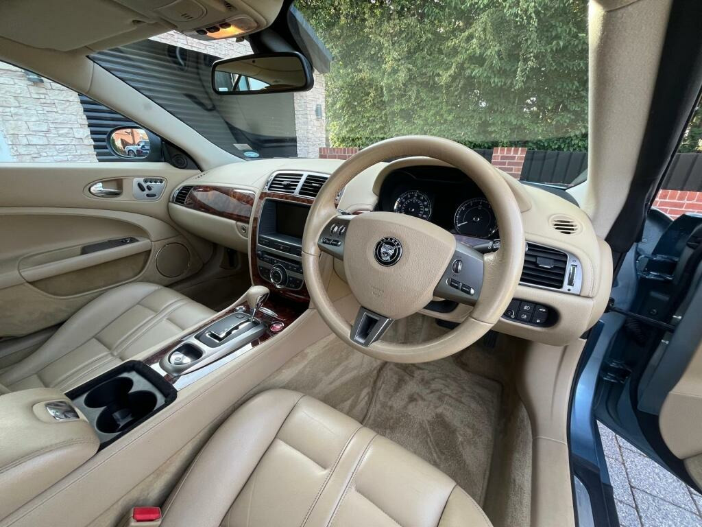 Very low mileage for its age averaging just 2900 miles per year.Fantastic colour combination of light blue metallic with beige leather.Specification includes dark burr walnut,electric memory seats,heated seats,navigation,climate control.These aluminium bodied cars which dont suffer from the rust issues of the previous steel body model benefit from better mpg because of there lighter bodies.Viewing highly recommended as this example is truly a tribute to its previous owners.Spent most of its life garaged hence the stunning condition.Jaguar and specialist history with service book and invoices.We are a highly rated 5 star dealer please read our reviews and supply nationwide.Full dealer facilities available.For more information please contact Scott direct on 07831440991.. .