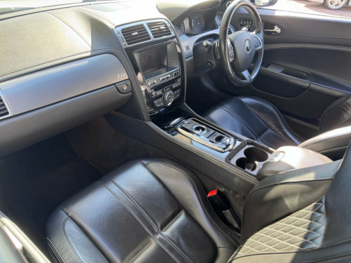 20in Alloy Wheels Gloss Black Finish, 7in Colour Touch Screen Display, Active Differential Control, Adaptive Dynamics, Adaptive Restraint Technology System, Audio Connectivity Module - USB, Automatic Headlight Washers, Auxiliary Power Sockets, Bluetooth Telephone Connectivity, Bowers and Wilkins 525W Surround Sound System, Bright Stainless Steel Pedals, Cruise Control, DAB Radio Receiver, Dark Mesh Aluminium, Daytime Running Lights - LED, Dual Zone Automatic Climate Control, Front Bumper - Black Outboard Bezel and Black Mesh Inserts, Front Parking Aid, Headlights - Automatic Levelling, Headlights - Bi-Function HID Xenon with LED Daytime Running Lights, Heated Front Seats, Heated Front Windscreen, Heated Steering Wheel, Humidity Control, ISOFIX Rear, Interior Rear View Mirror - Electrochromic, Jaguar High Performance Braking System, Jaguar Sequential Shift - Steering Wheel One Touch Paddles, Jaguar Smart Key System with Keyless Entry, Jaguar Smart Key System with Keyless Start, JaguarDrive Control with Winter Mode and Dynamic Mode, LED Tail Lights, Louvered Bonnet with Supercharged Script, Navigation with Route Guidence with Traffic Messaging Channel, Perimeter Sensing and Sounder, Phosphor Blue Halo Illumintion including Mood Lighting, Power Assisted Steering, Premium Carpet Mats - Nubuck Edged with Jaguar Script, Premium Headlining - Suedecloth Jet, Rear Parking Aid with Touch Screen Visual Indicator, Red Painted Brake Calipers with Jaguar Script, Remote Control Central Lock