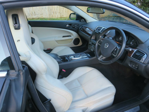 This 2011 Jaguar XK V8 Portfolio is a truly special example, boasting a desirable specification that sets it apart. Under the bonnet lies a powerful 5.0 litre petrol engine, delivering a refined driving experience. This particular model features the Portfolio trim, enhancing its luxurious feel.The XK V8 Portfolio is equipped with eye catching 20 inch Takoba alloy wheels, which complement its sleek design. Inside, you'll find exquisite Performance Soft Grain Leather in Ivory, creating a sophisticated cabin. For added convenience and safety, it includes a reverse park camera with guidance and parking assistance, along with DAB digital radio for your entertainment needs. These features collectively demonstrate a higher level of comfort and technology compared to other vehicles in its class. verse park camera with guidance, dab digital radio, 20in takoba alloy wheels, performance soft grain leather - ivory, satin rosewood veneer, aluminium knurled veneer, cruise control & speed limiter, figured ebony veneer, leather steering wheel, leather steering wheel with contrast stitching, tyre repair kit