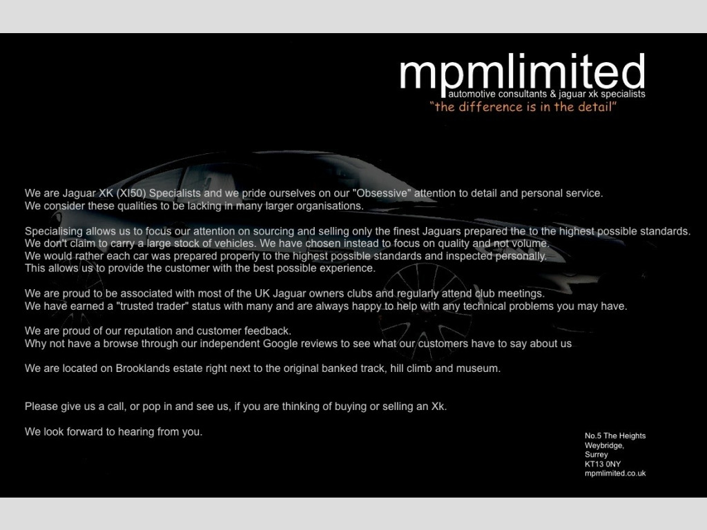 ,, It has come to us directly from a fellow Jaguar enthusiast and serial Jaguar owner who has owned it for the last 4 years. It was garaged throughout his tenure and has rarely been out in the rain.