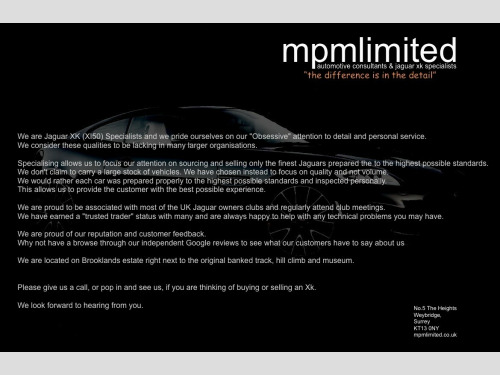 , SPM our local and highly regarded Jaguar workshop have done a fully documented pre-delivery inspection on this vehicle for us prior to delivery. (This is available for you to review by request) ,