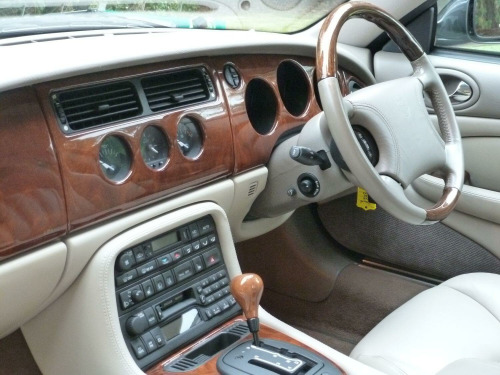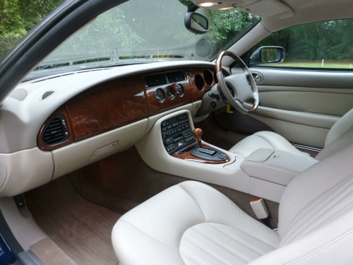 Sapphire Blue metallic with Oatmeal leather and Walnut Veneer. Three owners and only 32000 mls from new with an impeccable service history. Full specification includes: Classic interior trim with Walnut veneer,Wood+Leather s/wheel,18in alloys,Electric heated seats with drivers memory,Climate control,CD multichanger and all usual XK8 refinements. We have supplied the car to the last two owners who have covered very little mileage since. Fitted with later spec timing chain/tensioner and recent set of tyres. An exceptional XK8 and quite possibly one ofthe finest currently on offer. Sold with all original books/manuals,two keys,extensive history file with original purchase invoice,service invoices/old MOT certificates and two keys..