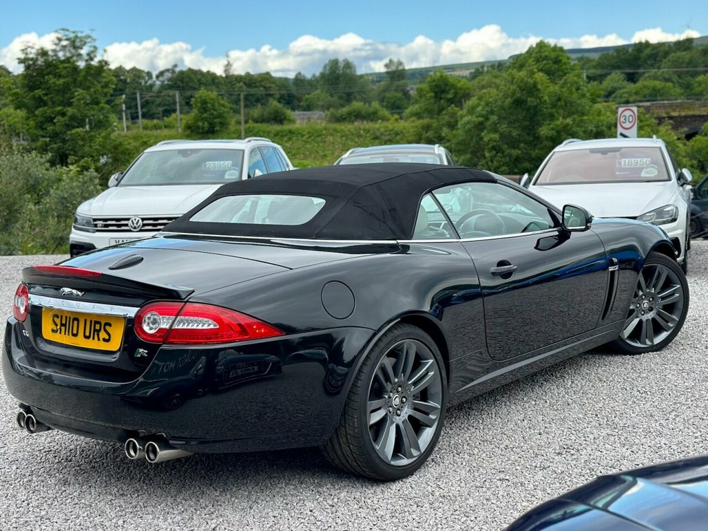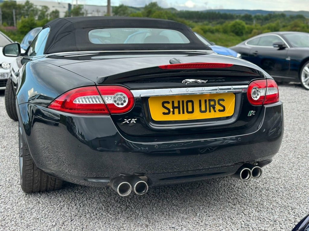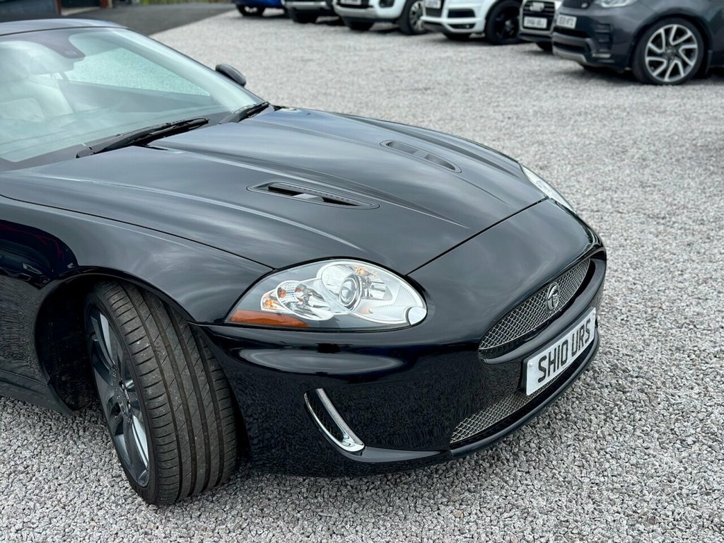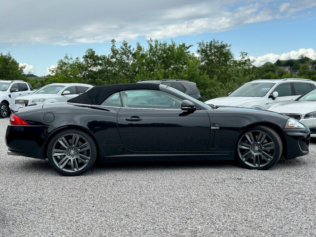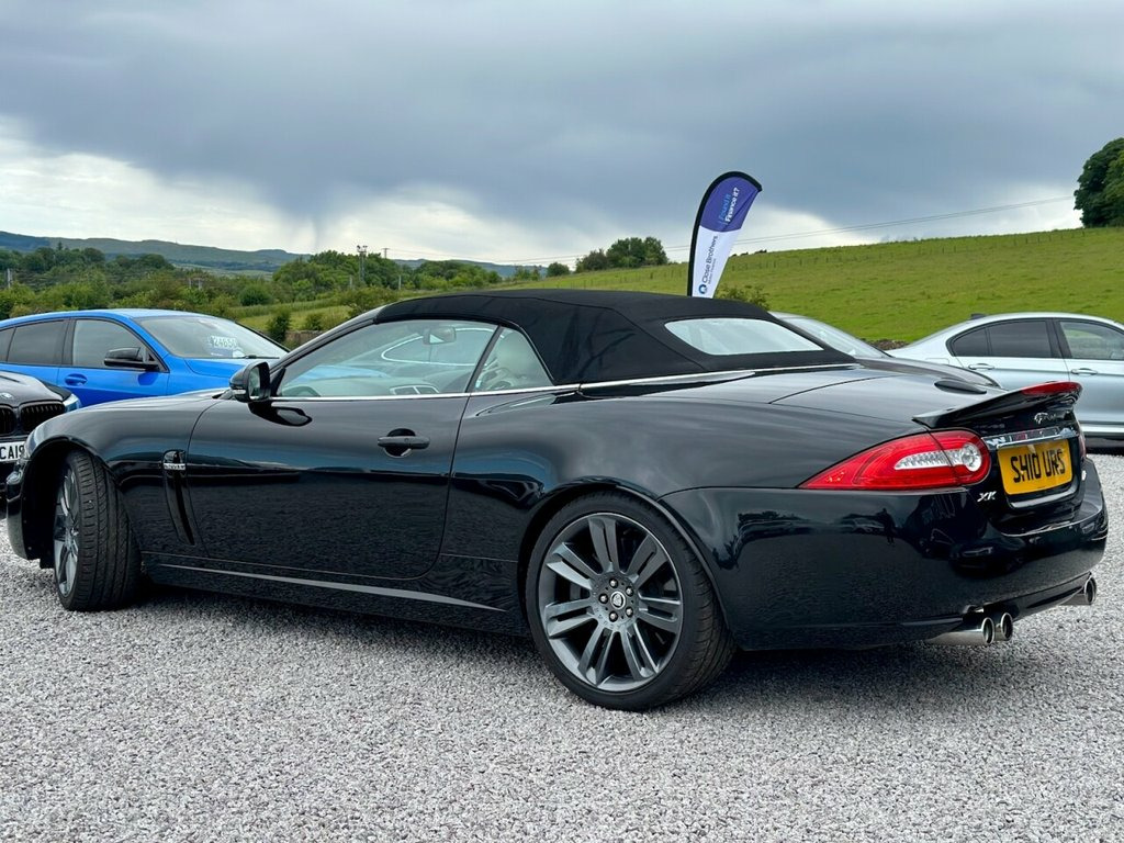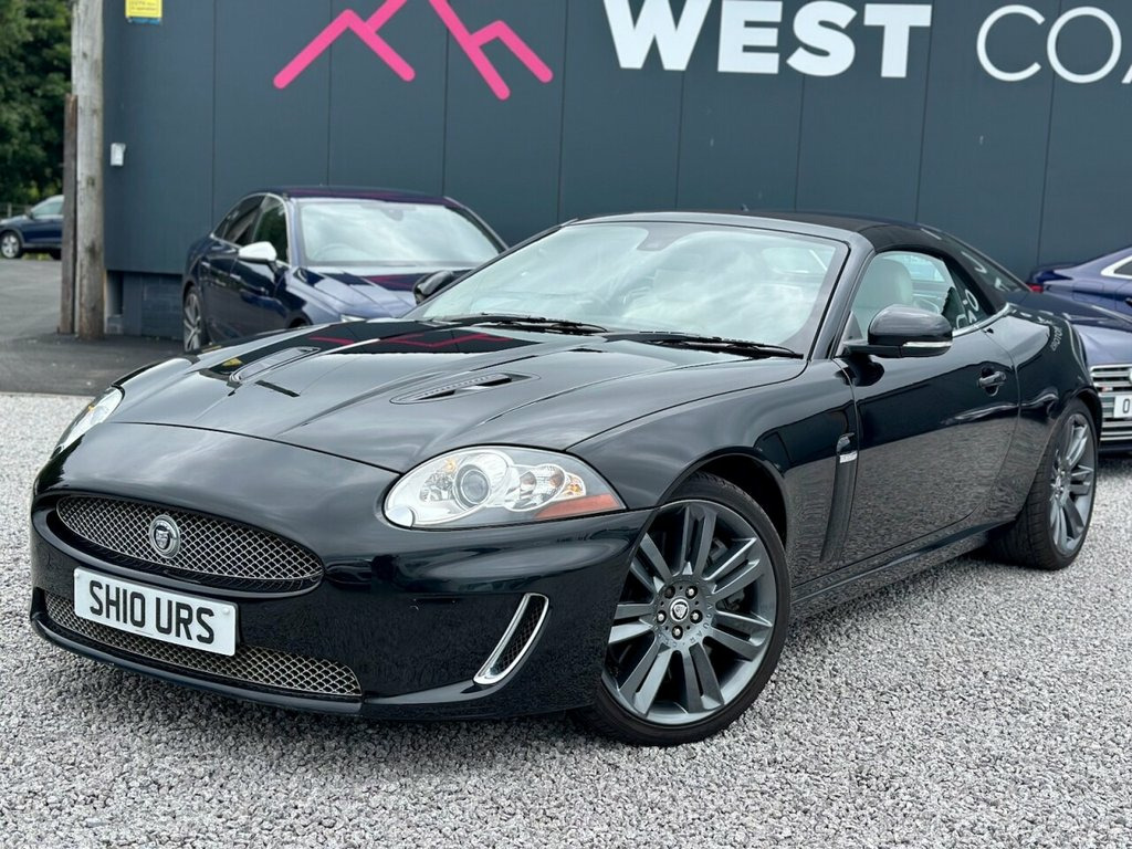 2010 (10) JAGUAR XKR 5.0 V8 SUPERCHARGED CONVERTIBLE West Coast Motors are proud to present this stunning 2010 (10) Jaguar XKR 5.0 V8 Supercharged Convertible, finished in Ultimate Black with contrasting Ivory leather interior and black soft top. This example has covered just 79,000 miles from new with partial service history is present, with previous maintenance carried out by Jaguar specialists Prestige in Paisley. Freshly serviced prior to sale, this example presents in lovely condition both inside and out. The bodywork is clean and sharp, the wheels have just been freshly refurbished and wear premium tyres all round. Not something often available in this spec and condition. Factory spec includes Bowers & Wilkins premium sound system, heated leather seats, heated steering wheel, cruise control, keyless entry, dual-zone climate, parking sensors, and more. Powered by Jaguar's snarling 5.0-litre V8 Supercharged engine, it delivers a mighty 510bhp through the rear wheels with addictive sound and pace. Driving experience is smooth, refined, and effortlessly fast—exactly what a big cat should Originally £80,810 when new, this is a huge amount of car and performance for the money. For full details please see https://www.wcmotors.co.uk/used-jaguar-xkr-west-kilbride-ayrshire-XXXXXXX Get in touch to reserve your new car today! 3 months Warranty as standard Part exchange welcome Low rate finance available Debit/credit cards accepted AA breakdown 20in Nevis Alloy Wheels, Aluminium veneer, Burr Walnut veneer, Cruise Control & speed limiter, Dark oak veneer, Hood- Beige, Hood- Black, Hood- Blue, Hood- Dark Grey, Leather Steering Wheel, Leather Steering Wheel with contrast sti, Premium hood- Burgundy, Premium hood- Dark Brown, Premium hood- Dark Green, R Performance Aerodynamic Pack, Rich oak veneer, Tyre Repair kit
