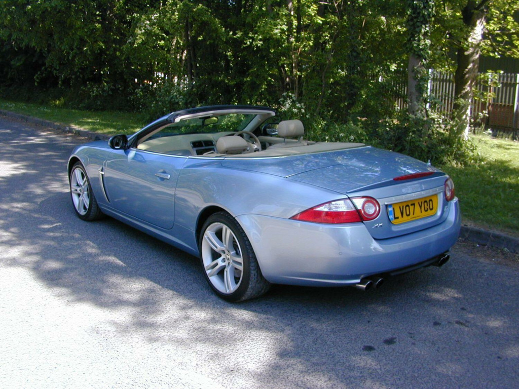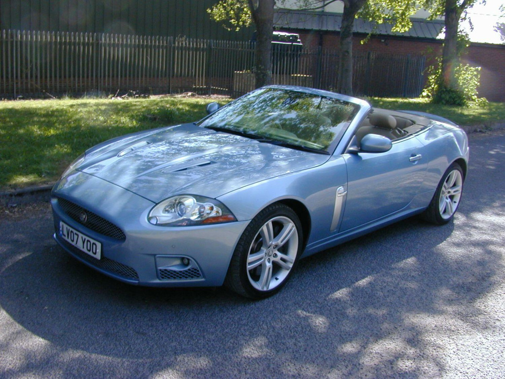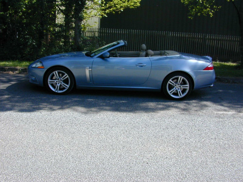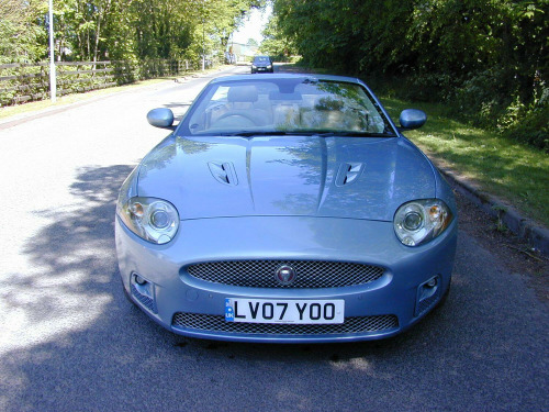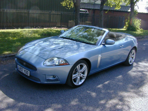 Jaguar XKR 4.2 Convertible, (RHD - UK CAR), , Features:-, , 2007, , Silver blue metallic, Full, biscuit electric, memory, heated, sports leather trim , Contrasting biscuit carpets, Full factory wood pack, Electric soft top, Very high specification, , Low miles - ONLY 68k!, , £12,795, Warranty Cover Included,