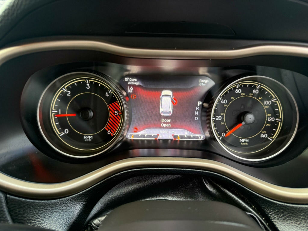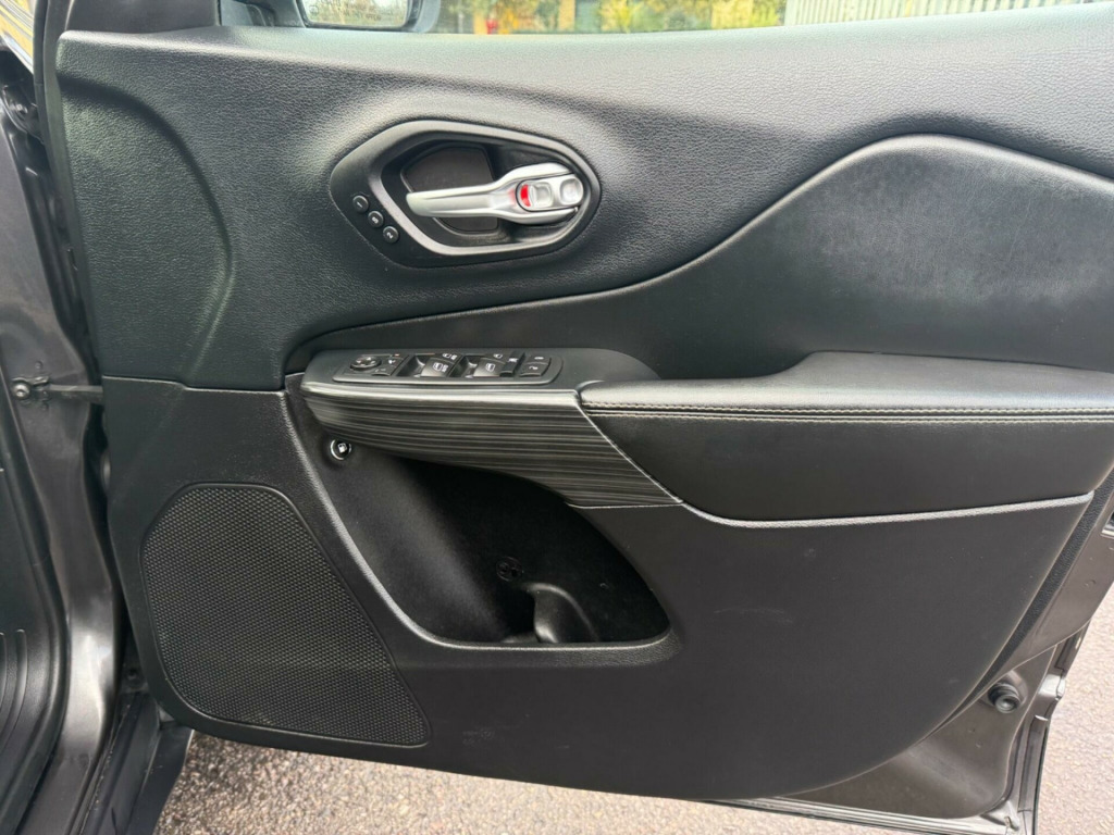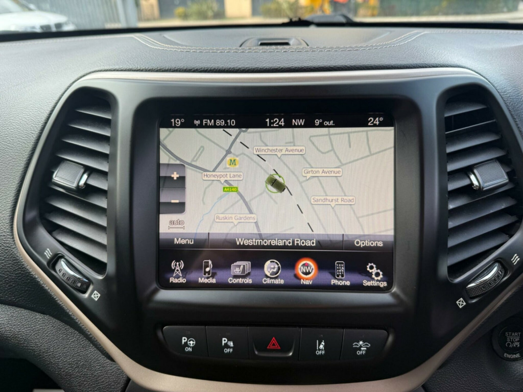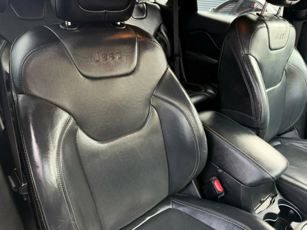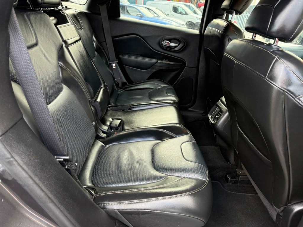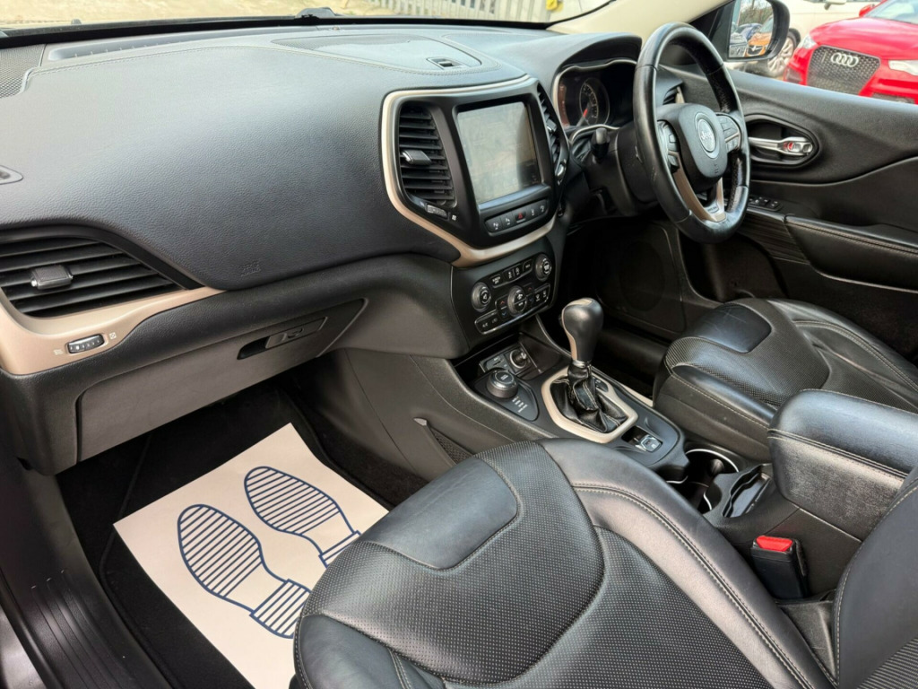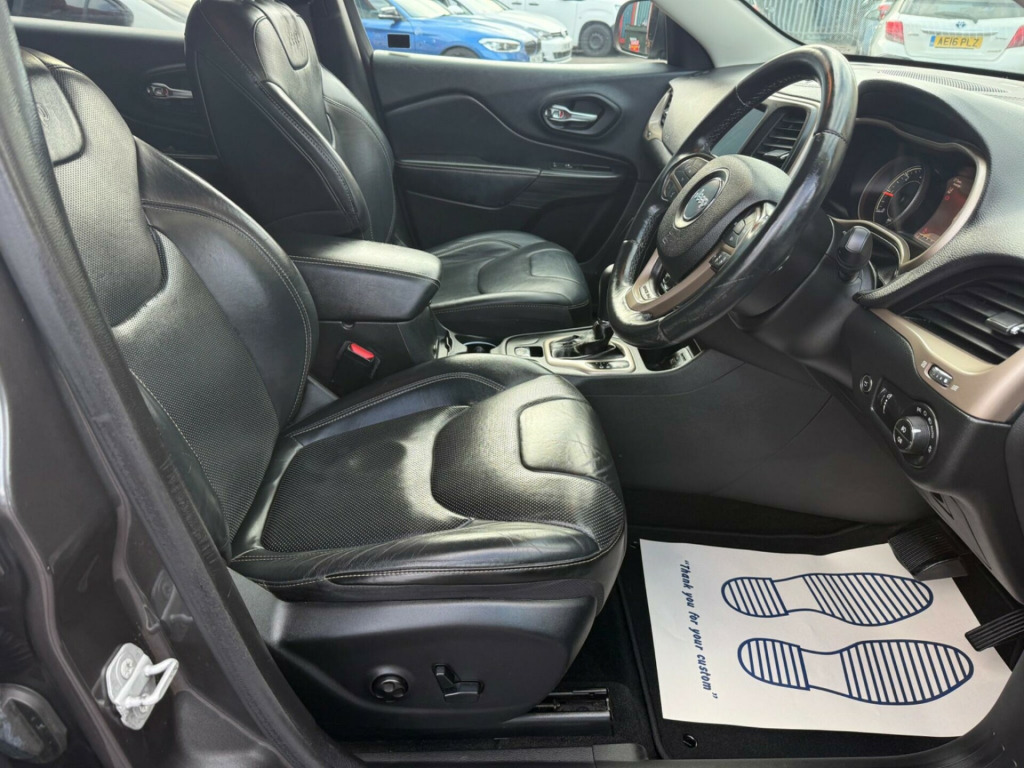This 2015 Jeep Cherokee Limited boasts a clear vehicle history and has had only two owners, offering you peace of mind. This four wheel drive model features a powerful 2.2 litre diesel engine, meeting Euro 6 emissions standards. Inside, you'll find a wealth of technology including the Technology Pack with Blind Spot Assistance and Adaptive Cruise Control, UConnect Bluetooth for seamless connectivity, and a convenient wireless charging pad. Comfort is assured with dual zone climate control and heated front seats, all housed within a spacious interior with a large boot, perfect for all your needs.The Jeep Cherokee Limited stands out with its impressive performance, accelerating from 0 to 62 miles per hour in just 8.5 seconds, demonstrating its capability. Its substantial towing weight of 2495 kg further highlights its versatility for carrying loads or towing. These features combined indicate how this particular Cherokee offers a superior driving experience and practical advantages compared to other vehicles in its class. chnology pack, spare wheel - full size, nappa leather - morocco black, 12v power socket, 12v power socket - luggage compartment, 18in alloy wheels - polished aluminium, 9 amplified speakers with subwoofer, abs - anti-lock brakes, air conditioning - dual zone with automatic temperature control, airbags - drivers, airbags - drivers knee, airbags - front curtain, airbags - front side, airbags - passenger, airbags - rear curtain, alarm - thatcham category 1, ambient led interior lighting, armrest, armrest - rear with cupholders, audio jack input, auto dimming rear view mirror, body coloured door handles, body coloured shark fin antenna, cd player - remote single disc in centre armrest, child seat anchor system, chrome grille, chrome window surrounds, comfort and convenience pack, conventional differential rear axle, cruise control, cupholders - rear, dab - digital audio broadcasting, daytime running lights - led, deep tint sunscreen glass, door mirrors - body coloured, door mirrors - memory, door mirrors - power folding - heated with auto folding function and puddle light, ears - emergency accident response system, erm - electronic roll mitigation, esc - electronic stability control, electric park brake, electric windows - front one touch, electronic convenience group, electronic vehicle information centre, exhaust tailpipes - chrome rectangular dual, floor mats - front and rear, front fog lights with cornering lights, front and rear climate control outlets, gear knob - leather wrapped, headlights - automatic levelling system, headlights - automatic on, headlights - bi-xenon, headlights - black bezels, headlights - washers, heated front seats, hill start assist, humidity sensor, illuminated front cupholders, instrument cluster - 7in tft colour display, interior accents - premium, jeep active drive, jeep rack off road kit - inc. gloves and tow straps, keyless enter-n-go, leather wrapped steering wheel, luggage compartment - cover, luggage compartment - light, luggage compartment - management system, luggage compartment - storage net, luggage compartment - tie down loops, map-dome reading lights - front and rear, microphone in rear view mirror, park assist pack, parksense front park assist system, parksense rear park assist system, parkview rear back up camera, pollen filter, power locking fuel cap door, power steering - electro-hydraulic, power tailgate, rain sensitive windscreen wipers, rear 60-40 split folding, rear lights - led, remote sd card slot, roof rails - chrome, safety and security pack, seats - driver memory, seats - drivers 4-way electric lumbar adjustment, seats - drivers 8-way electric adjustment, seats - front passenger fold flat, seats - passenger 6-way adjustment, selec-terrain system, smokers pack, speed sensitive power locks, steering column - electronic shaft lock, steering column - tilt and telescopic, steering wheel - mounted audio controls, subwoofer, sun visors with illuminated vanity mirrors, traction control, trailer sway damping - control, tyre pressure monitoring - warning display, tyre service kit, uconnect 8.4in smarttouch navigation system, uconnect 8.4in smarttouch system, uconnect bluetooth, uconnect phone with voice command, usb connectivity, voice command - navigation, wireless charging pad