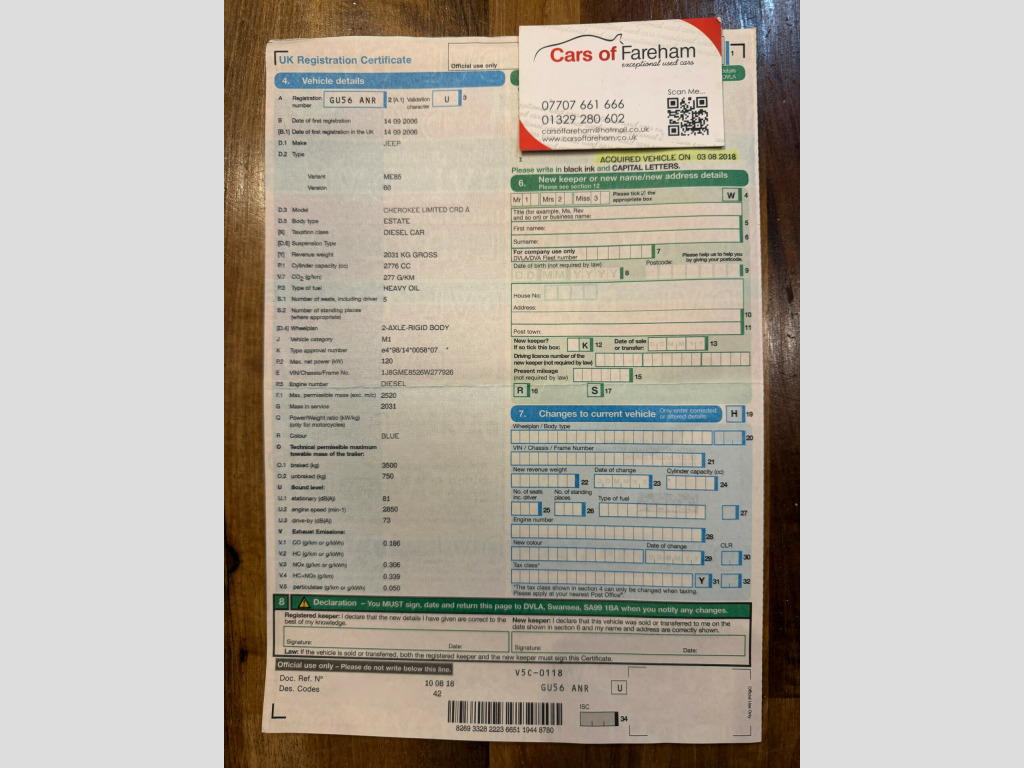 This 2006 Jeep Cherokee 2.8 TD Limited 4x4 Automatic 5dr is currently available for £2,000 in Fareham Hampshire with Diesel engine and Automatic gearbox. For more information or to arrange a viewing, click here to send us an email using form below.
