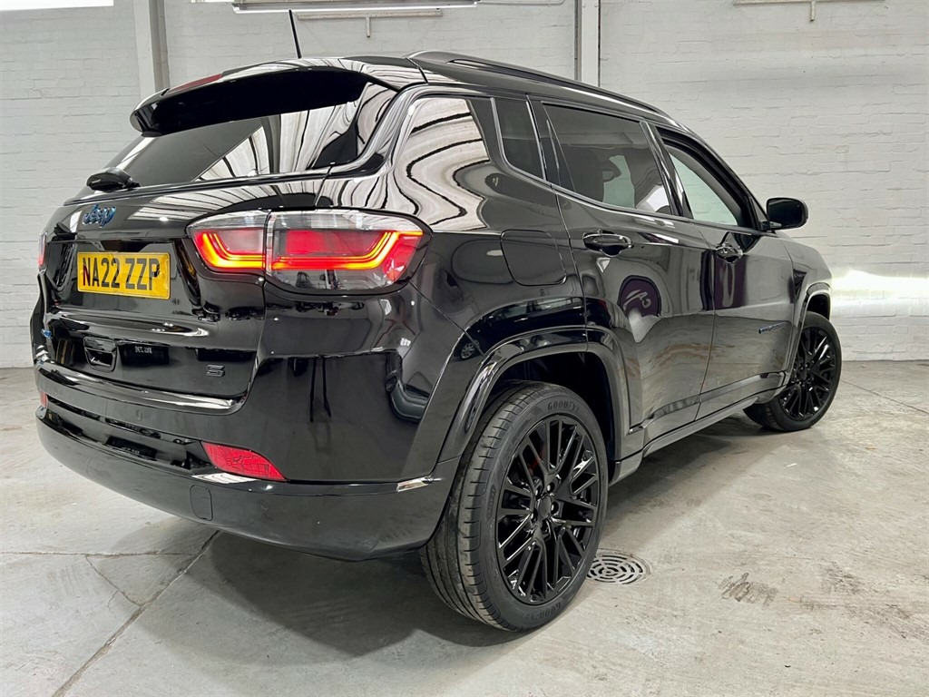 *DEPOSIT RECEIVED*......Superb in Triple Black, Boasting an exceptionally low mileage for its age, this 2022 Jeep Compass GSE T4 S represents a superb example of this popular model. With a full dealership service history and a clear vehicle history check, this four wheel drive, 1.3 litre petrol plug in hybrid is presented in excellent condition. It meets Euro 6 emissions standards and will come with a 12 month MOT for your peace of mind. The S trim level enhances the already impressive specification, featuring advanced LED projector and reflector headlamps for superior visibility. Inside, you will find a wealth of comfort and convenience features that set this Jeep Compass apart. The ventilated leather seats, complete with memory function and heated front seats, offer a truly premium experience. Stay comfortable in all conditions with dual zone temperature control, including pre conditioning capability and a heater, allowing you to set your ideal cabin climate. These thoughtful additions demonstrate a higher level of refinement and driver focus compared to many other vehicles in its class. 19in Alloy Wheels - Painted Gloss Black,Dual Zone Temperature Control with Pre-Conditioning Capability and Heater,Adaptive Cruise Control with Stop and Go,ParkView Rear Back Up Camera,Bluetooth Streaming Audio,Power Liftgate Release,Infotainment Plus Pack,Heated Front Seats,Heated Steering Wheel,Passive Entry with Keyless Go,ParkSense Rear Park Assist System,Front Parking Sensors,Selec-Terrain System with Sport Mode,12V Auxiliary Power Outlet - Second Row,Auto Dimming Rear View Mirror,160MPH Primary Speedometer,4XE Badge - E-Torque Badge,Active Lane Management,Blind Spot Detection,Active Speed Limiting Device,Air Vents - Front and Rear,Black Side Roof Rails,Alarm - Premium,Airbags - Drivers,Airbags - Front Side,Aspherical Driver Exterior Mirror,Airbags - Front and Rear Side Curtain,Airbags - Passenger,All Speed Traction Control,All-Weather Floor Mats with Jeep Logo,Anti Lock 4 Wheels Disc Brake - ABS,Automatic Electronic Hold Brake,Auxiliary 12v Power Outlet In Cargo Area,Battery Run Down Protection,Battery Skid Plate,Belly Pan - Underbody Protection,Black Window Surrounds,Body Colour Door Cladding,Body Colour Exterior Sill Mouldings,DAB - Digital Audio Broadcasting,Body Coloured Door Handles,Body-Colour Steel Roof,Capless Fuel Filler,Cargo Compartment Carpet,Cargo Compartment Cover,Cargo Compartment Lamp,Cargo Compartment Organiser,Cargo Load Floor,Deep Tint Privacy Glass,Cargo Tie Down Loops,Centre Console with Sliding Armrest,Centre Rear 3-Point Seat Belt,Compass Badge,Child Seat Anchor System,Coastdown and Run-in Optimization,Coat Hooks,Dash Insulation,EV-PHEV Mode 2 Charging Cable,Global Telematics Box Module - TBM,Door Mirrors - Gloss Black,Door Mirrors - Power Folding,Driver Assist Handles,Drowsy Driver Detection System,Dual Note Electric Horns,ERM - Electronic Roll Mitigation,ESC - Electronic Stability Control,Dual Tyre Pressure,Electric Power Steering,Exterior Door Mirrors with Courtesy Lamps,Fascias - Body Colour,Forward Collision Warning Plus Mitigation,Gear Knob - Leather Wrapped,Front Fascia - Belly Pan Skid Plate,Front Height-Adjust Seatbelts,Front License Plate Bracket,Front Map Pocket LED Light,Full Length Floor Console,Gloss Black Exterior Badging,Gloss Black Grille with Neutral Grey Rings,Glovebox Light,Glovebox with Damper Door,Head Restraints - Rear x3,Headlamps - Automatic,Headlamp Off Time Delay,Headlights - Levelling System,Headlights - Smartbeam,Heated Rear Window,Hill Descent Control,Hill Start Assist,ISA - Intelligent Speed Assist,Illuminated Entry,Instrument Cluster - 10.25in TFT Colour Display,Instrument Panel,Interior Door Handle LED Lamp,Internal Rear Grab Handles,Jeep Badge,Media Hub,LED Projector Headlamps,Jeep Call Assistance Label,LED Front Fog Lamps,LED Tail Lamps,LED Reflector Headlamps - High,Lower Bodyside Cladding - Black,Map-Reading Lamps,Media Centre Electronics Storage,Neutral Grey Exterior Accent,Occupant Detection System,Outside Temperature Display,Overhead Console,Overhead Dome LED Lights,Passenger Airbags Deactivation,Passenger Assist Handles,Pedestrian and Cyclist Emergency Braking,Power Pack,Rear Air-Conditioning and Heater Vents,Rain Sensitive Windscreen Wipers,Power Windows - Driver and Passenger Express Up and Down,Power 4-Way Driver Lumbar Adjust,Power 8-Way Adjustable Driver Seat,Power Locking Fuel Filler Door,Rain Brake Support,Rear Door Child Protection Locks,Steering Wheel - Mounted Audio Controls,Wheel Flares - Body Colour,Rear Fascia,Removable Short Mast Antenna,S Badge,Seats - 40-20-40 Split Bench Seat,Seats - Front Back Map Pockets,Seats - Passenger 6-Way Adjustment - Manual,Speakers x6,Steering Column - Electronic Shaft Lock,Steering Column - Tilt and Telescopic,Traffic Sign Recognition,TBM Connectivity EMEA,Tachometer,USB A Type - Second Row,USB Host Flip,Vehicle Information Centre,Vinyl Wrap Steering Wheel,Windshield Wiper De-Icer,Trailer Sway Damping - Control,Spare Wheel Storage Insulation,Tyre Kit Tag - B Group,Tyre Pressure Monitoring Display,Ventilated Leather Seats