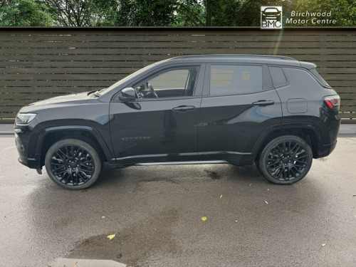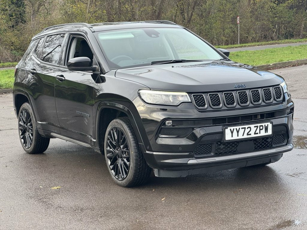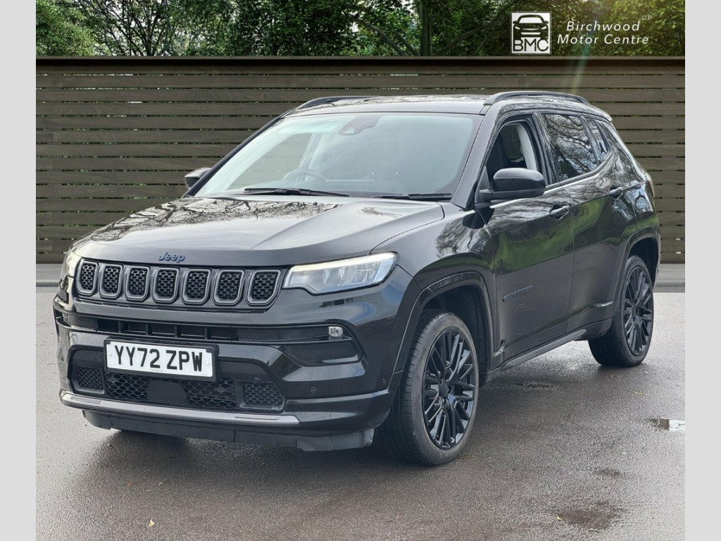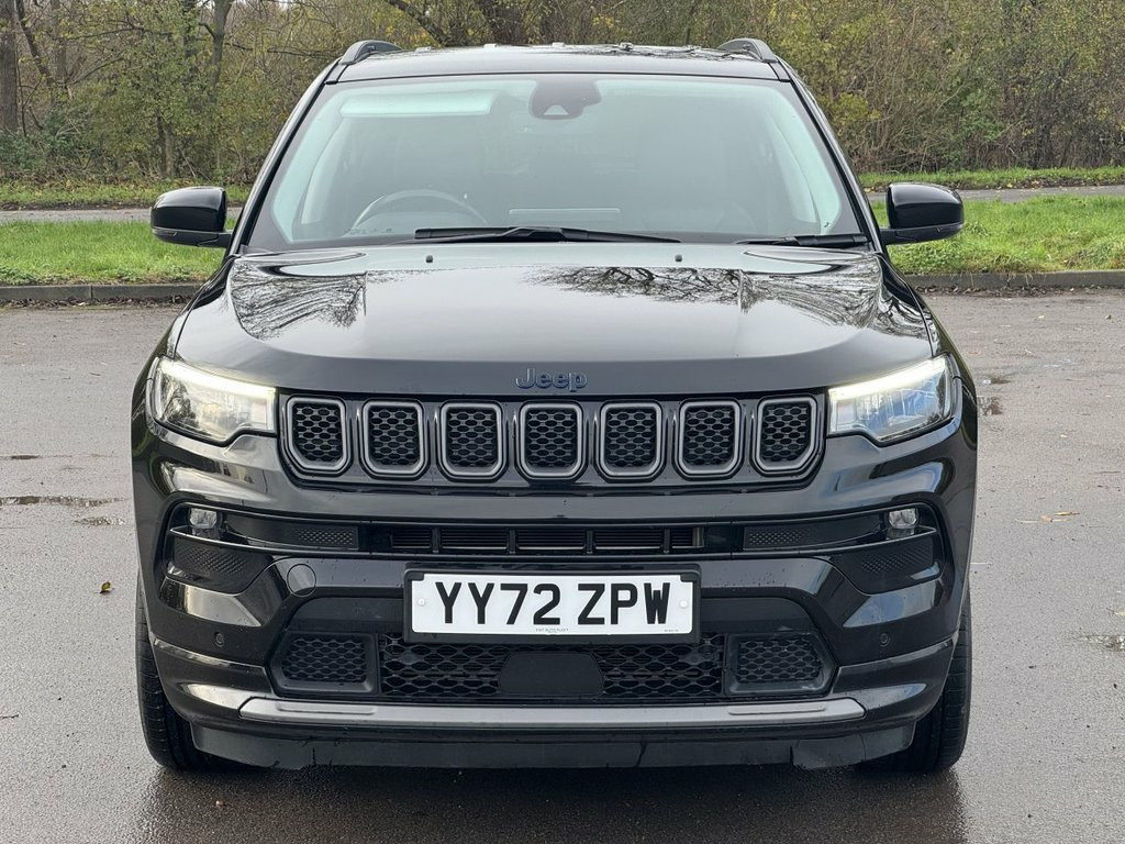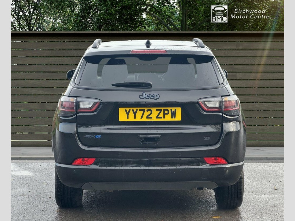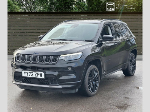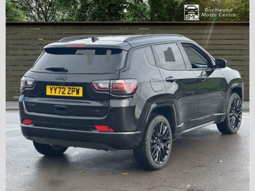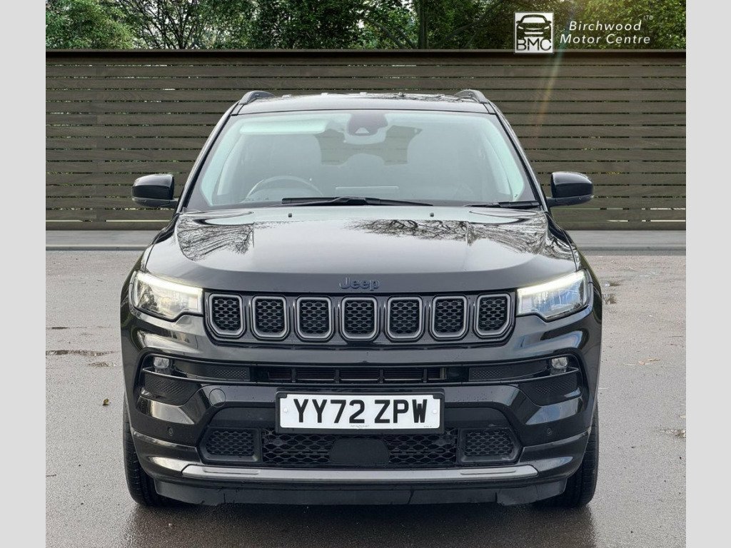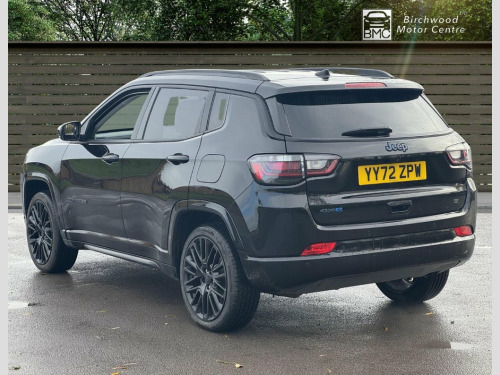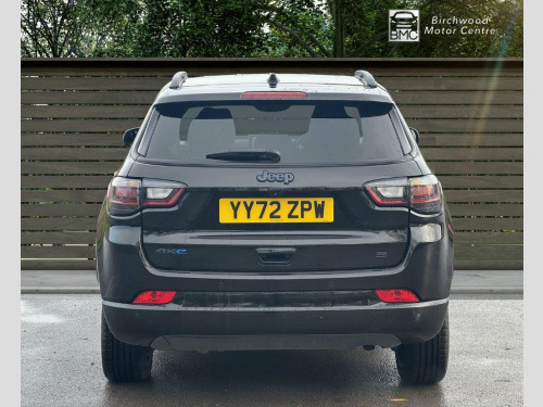 This 2022 Jeep Compass GSE T4 S is a superb example, having had only one owner since new. This four wheel drive plug in hybrid boasts a 1.3 litre petrol engine and meets Euro 6 emission standards. It comes equipped with a ParkView rear back up camera for easier parking, and Bluetooth streaming audio for your entertainment needs. Comfort is enhanced by a heated steering wheel, and convenience is provided by passive entry with keyless go and automatic headlights. The S trim level offers a refined driving experience, showcasing how this Jeep Compass stands out from other vehicles in its class. The combination of its plug in hybrid technology, four wheel drive capability, and a host of convenient features like the heated steering wheel and keyless entry, make it a practical and enjoyable choice for any driver. 10.1in Uconnect DAB Touchscreen Infotain, 12V Auxiliary Power Outlet - Second Row, 160MPH Primary Speedometer, 19in Alloy Wheels - Painted Gloss Black, 2nd Row Air Outlet, 4XE Badge - e-Hybrid Badge, Active Lane Management, Active Speed Limiting Device, Adaptive Cruise Control with Stop and Go, Air Vents - Front and Rear, Airbags - Drivers, Airbags - Front and Rear Side Curtain, Airbags - Front Side, Airbags - Passenger, Alarm - Premium, All Speed Traction Control, Anti Lock 4 Wheels Disc Brake - ABS, Armrest - Rear with Cupholders, Aspherical Driver Exterior Mirror, Auto Dimming Rear View Mirror, Automatic Air Conditioning, Automatic Electronic Hold Brake, Autonomous Emergency Braking with