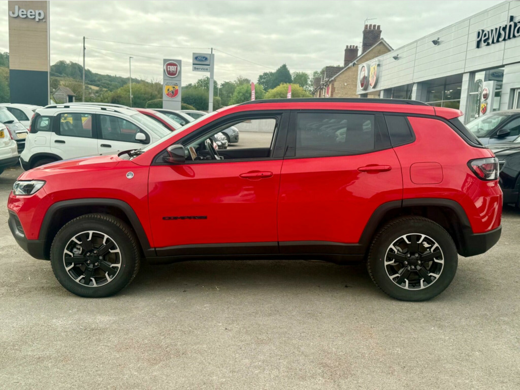 This 2025 Jeep Compass 1.3 T4 GSE 4xe PHEV Trailhawk 5dr Auto is currently available for £26,995 in Chippenham Wiltshire with Petrol engine and Automatic gearbox. For more information or to arrange a viewing, click here to send us an email using form below.