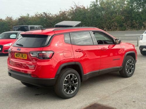 With only 10 miles on the clock and only one previous owner, this 2025 Jeep Compass GSE T4 Trailhawk is practically brand new. This four-wheel drive SUV is powered by a 1.3L Petrol Plug-in Hybrid engine and meets stringent Euro 6 emission standards. The Trailhawk trim comes equipped with a range of features designed for convenience and comfort, including Passive Entry with Keyless Go, which includes Keyless Entry, and heated front seats for those chilly mornings. The ParkView Rear Back Up Camera makes parking a breeze, and rear passengers will appreciate the independent rear air conditioning and heater vents. Stay connected on the go with the wireless charging pad.The Jeep Compass stands out with its comprehensive suite of features. The Passive Entry with Keyless Go system offers enhanced convenience compared to standard key systems. Heated front seats provide superior comfort over non-heated seats, especially during colder months. The ParkView Rear Back Up Camera offers increased safety and ease when manoeuvring, a step up from vehicles without such assistance. Rear air conditioning vents ensure all passengers enjoy a comfortable climate, unlike cars with only front vents. Finally, the wireless charging pad keeps your devices powered without the need for cables, a definite advantage over models lacking this feature.
