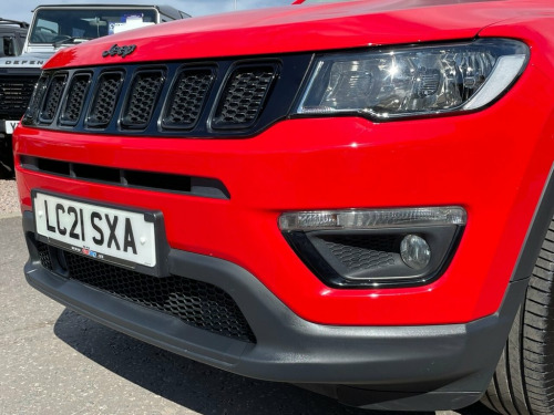 The 2021 Jeep Compass Night Eagle is a stylish, well-equipped SUV that blends rugged Jeep character with modern comfort and efficiency. Powered by a 1.4 MultiAir II petrol engine producing 138 bhp, it offers smooth acceleration, good fuel economy and a comfortable drive through its manual gearbox. The Night Eagle trim enhances the Compass with a distinctive, sporty look, featuring black exterior accents, gloss-black alloy wheels, privacy glass and unique Night Eagle badging. Inside, you'll find a high-quality cabin with Jeep's Uconnect touchscreen infotainment system, smartphone connectivity, dual-zone climate control, cruise control and comfortable cloth upholstery. Practical and versatile, the Compass provides ample passenger room and a generous boot, making it ideal for daily driving, commuting or weekend adventures. Safety and driver assistance features typically include lane departure warning, traffic sign recognition, rear parking sensors, hill start assist and multiple airbags, ensuring confidence on every journey. A smart-looking, well-equipped and dependable SUV that combines Jeep flair with everyday usability. Floor Mats - Front and Rear, 12V Auxiliary Power Outlet - Front, 230v Auxiliary Power Outlet, Auxiliary 12v Power Outlet In Cargo Area, Daytime Running Lights, Electric Power Steering, Front Fog Lights with Cornering Lights, GPS Navigation, Halogen Reflector Headlamps, Headlamp Off Time Delay, Headlamps - Automatic, Instrument Cluster - 3.5in Monochrome TF, LED Tail Lamps, Remote USB Port, Removable Short Mast Antenna, Speakers x6, Uconnect 8.4in DAB Radio with Touchscree, Uconnect Live, 18in Alloy Wheels - Low Gloss Black - Ce, Adaptive Rear Brake Lights, Aspherical Driver Exterior Mirror, Black Front Grille, Black Side Roof Rails, Black Window Surrounds, Body Colour Bumpers, Body Colour Ex