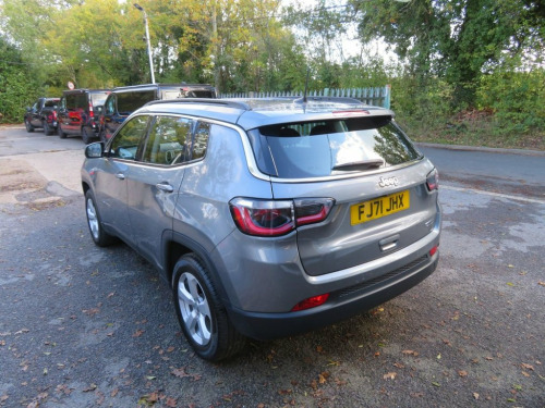 A top-seller at Lyons Farm Cars, the Jeep Compass is a tough looking family SUV with impressive capabilities. Good looking design, spacious and practical... the 1.4 turbo-charged MultiAir II petrol engine is extremely capable and fun to drive producing an impressive 140 BHP.   This example comes supplied with excellent service history (3 x service records) as well as a detailed inspection on arrival to us. One Owner. Sold with a new 12 month MOT. Euro 6 / ULEZ Compliant.   The Longitude specification includes a lot as standard: 8.4" Touchscreen with Apple CarPlay / Android Auto / Satellite Navigation & DAB Radio, Reverse Parking Camera with Guidelines & Rear Parking Sensors with Optical Display, 17" Alloy Wheels, Keyless Entry & Engine Start, Automatic Dual-Zone Climate Control, Bluetooth/Telephone with Voice Control, Cruise Control, Daytime Running Lights, Front Fog Lights, Automatic Headlights, Auto Wipers, Roof Rails, Start/Stop Engine, Electronic Parking Brake, Auto Dimming Rear View Mirror, Power Folding Mirrors, Electric Front + Rear Windows, USB Connection, Auxiliary Input, ISOFIX, Spare Remote Key.   2021 (71 plate) Jeep Compass 1.4 MultiAir II GPF Longitude 5 Door SUV finished in Magnesio Grey Metallic ----------  12V Auxiliary Power Outlet - Front, 17in Alloy Wheels - Satin Silver Premium, 230v Auxiliary Power Outlet, 4 Way Front Headrest Seats, Active Speed Limiting Device, Adaptive Rear Brake Lights, Advanced Brake Assist, Air Vents - Front and Rear, Airbags - Advanced Multistage Front - Fr, Alarm - Premium, All Speed Traction Control, Ambient LED Interior Lighting, Anti Lock 4 Wheels Disc Brake - ABS, Aspherical Driver Exterior Mirror, Auto Dimming Rear View Mirror, Autonomous Emergency Braking, Auxiliary 12v Power Outlet In Cargo Area, Black and Chrome Front Grille, Black Side Roof Rails, Body Colour Bumpers, Body Colour Exterior Mirrors, Body Coloured Door Handles, Body-Colour Steel Roof, Busine