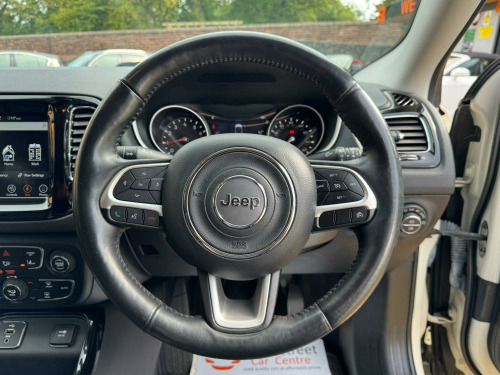 This 2019 Jeep Compass T Limited offers peace of mind with a clear vehicle history check, ensuring a sound provenance for this stylish SUV. Powered by a 1.4 litre petrol engine and meeting Euro 6 emissions standards, this Limited trim model combines efficiency with practicality. Inside, you'll find a host of features designed for comfort and convenience, including dual zone climate control, rear air conditioning and heater vents, and heated front seats. Navigating tight spaces is made easier with the ParkSense front and rear park assist system, and the Keyless Enter N Go system allows for effortless access.With an impressive fuel economy of 46 miles per gallon, this Jeep Compass T Limited stands out as a sensible choice for everyday driving. The inclusion of features like the ParkSense system and dual zone climate control indicates a higher level of specification compared to other vehicles in its class, enhancing both the driving experience and passenger comfort. This well equipped and efficient SUV is ready for its next adventure.We are proud to present this Jeep Compass 1.4T MultiAirII Limited Euro 6 (s/s) 5dr that comes with a service history for added peace of mind. It comes with 2 keys and 2 owner and has just been serviced. 12 months MOT included, You have the option to purchase RAC warranty with the option to extend.At New Street Car Centre we have over 25 years experience as the largest and most trusted used car dealership in Telford. We offer award winning customer service, great prices and excellent preparation standards. Each vehicle undergoes quality control inspections and a complimentary history check for your added peace of mind.we have also included additional specification but please always check the exact specification details with ourselves prior to purchase as models can vary. 12V Auxiliary Power Outlet - Front, 18in Alloy Wheels - Silver and Tech Grey, 230v Auxiliary Power Outlet, 60-40 Rear Seat with Trunk Pass-Thru, Active Speed Limiting Device, Advanced Brake Assist, Airbags - Advanced Multistage Front - Front Side and Side Curtain Front and Rear, Alarm - Premium, All Speed Traction Control, All-Weather Floor Mats with Jeep Logo, Ambient LED Interior Lighting, Anti Lock 4 Wheels Disc Brake - ABS, Apple CarPlay and Android Auto Integration, Auto Dimming Rear View Mirror, Autonomous Emergency Braking, Auxiliary 12v Power Outlet In Cargo Area, Beats Audio 9-Speaker System, Black Roof Rails with Chrome Inserts, Black and Chrome Front Grille, Blind Spot Monitoring and Cross-Path Detection, Body Colour Exterior Mirrors, Body Coloured Door Handles, Child Seat Anchor System, Chrome Exterior Accents, Chrome Window Surrounds, Cruise Control, Deep Tint Sunscreen Glass, Door Mirrors - Power Folding, Dual Zone Climate Control, ERM - Electronic Roll Mitigation, ESC - Electronic Stability Control, Electric Power Steering, Electronic Park Brake, Exhaust Tailpipes - Chrome, Exterior Door Mirrors with Courtesy Lamps, Fog Lamp Bezels - Chrome, Forward Collision Warning Plus, Front Fog Lights with Cornering Lights, Front Height-Adjust Seatbelts, Front Passenger Forward Fold-Flat Seat and Storage Under Passenger Seat, Halogen Projector Headlamps, Heated Front Seats, Heated Steering Wheel, Hill Start Assist, Immobiliser, Instrument Cluster - 7in TFT Colour Display, Keyless Enter-N-Go, LED Signature Lighting, LED Tail Lamps, Lane Departure Warning Plus, Leather Wrapped Steering Wheel, Parallel and Perpendicular Park Assist and Camera, ParkSense Front and Rear Park Assist System, ParkView Rear Back Up Camera, Power 8-Way Driver - Passenger Seats with Lumbar Adjust, Power Windows - Driver and Passenger Express Up and Down, Pretensioning Seatbelts, Rain Sensitive Windscreen Wipers, Rear Air-Conditioning and Heater Vents, Rear Door Child Protection Locks, Shift Indicator Warning Lamp, Steering Wheel - Mounted Audio Controls, Trailer Sway Damping - Control, Tyre Service Kit, Uconnect 8.4in DAB Radio with Touchscreen USB AUX Satellite Navigation and Bluetooth, Uconnect Live, Windshield Wiper De-Icer, Leather - Black with Tan Accent Stitching.