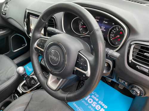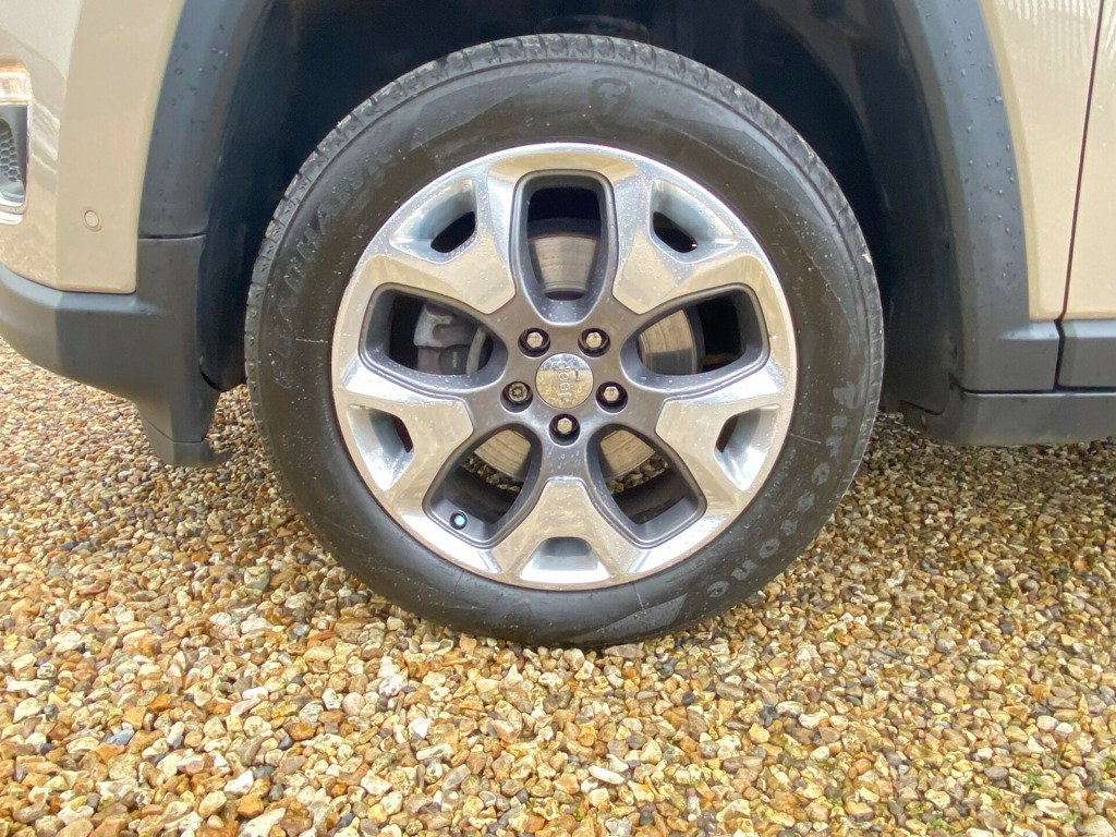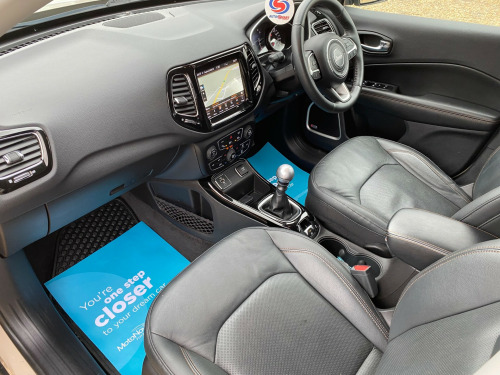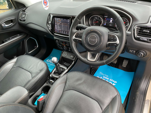 This 2019 Jeep Compass 1.4T MultiAirII Limited SUV with 33239 miles on it is a stylish and reliable vehicle that's perfect for both urban and off-road adventures. Powered by a petrol engine and equipped with a manual transmission, this 5-door, 5-seater SUV is ULEZ compliant and have a fresh MOT on sale. Finished in a sleek Mojave Sand, the interior features luxurious black leather with tan accent stitching, and includes convenient amenities such as a 12V auxiliary power outlet, a 230v auxiliary power outlet, and seamless Apple CarPlay and Android Auto integration. With a Euro 6 (s/s) (140 ps) rating, this Compass is ready to take you on your next journey in style and comfort.- 2 Keys - Good service history - Extended warranties available- Part exchange welcome- Finance available v auxiliary power outlet - front, 230v auxiliary power outlet, apple carplay and android auto integration, auxiliary 12v power outlet in cargo area, beats audio 9-speaker system, uconnect 8.4in dab radio with touchscreen usb aux satellite navigation and bluetooth, uconnect live, 18in alloy wheels - silver and tech grey, black roof rails with chrome inserts, black and chrome front grille, body colour exterior mirrors, body coloured door handles, chrome exterior accents, chrome window surrounds, deep tint sunscreen glass, door mirrors - power folding, electric windows - front one touch, exhaust tailpipes - chrome, fog lamp bezels - chrome, heated and adjustable door mirrors with indicators, tyre service kit, windshield wiper de-icer, 60-40 rear seat with trunk pass-thru, all-weather floor mats with jeep logo, ambient led interior lighting, auto dimming rear view mirror, dual zone climate control, front passenger forward fold-flat seat and storage under passenger seat, heated front seats, heated steering wheel, instrument cluster - 7in tft colour display, leather wrapped steering wheel, power 8-way driver - passenger seats with lumbar adjust, rain sensitive windscreen wipers, rear air-conditioning and heater vents, steering wheel - mounted audio controls, active speed limiting device, advanced brake assist, airbags - advanced multistage front - front side and side curtain front and rear, alarm - premium, all speed traction control, anti lock 4 wheels disc brake - abs, autonomous emergency braking, child seat anchor system, erm - electronic roll mitigation, esc - electronic stability control, electronic park brake, front height-adjust seatbelts, hill start assist, immobiliser, keyless enter-n-go, pretensioning seatbelts, rear door child protection locks, trailer sway damping - control, blind spot monitoring and cross-path detection, cruise control, electric power steering, forward collision warning plus, gear shift indicator, lane departure warning plus, parallel and perpendicular park assist and camera, parksense front and rear park assist system, parkview rear back up camera, exterior door mirrors with courtesy lamps, front fog lights with cornering lights, halogen projector headlamps, led signature lighting, led tail lamps