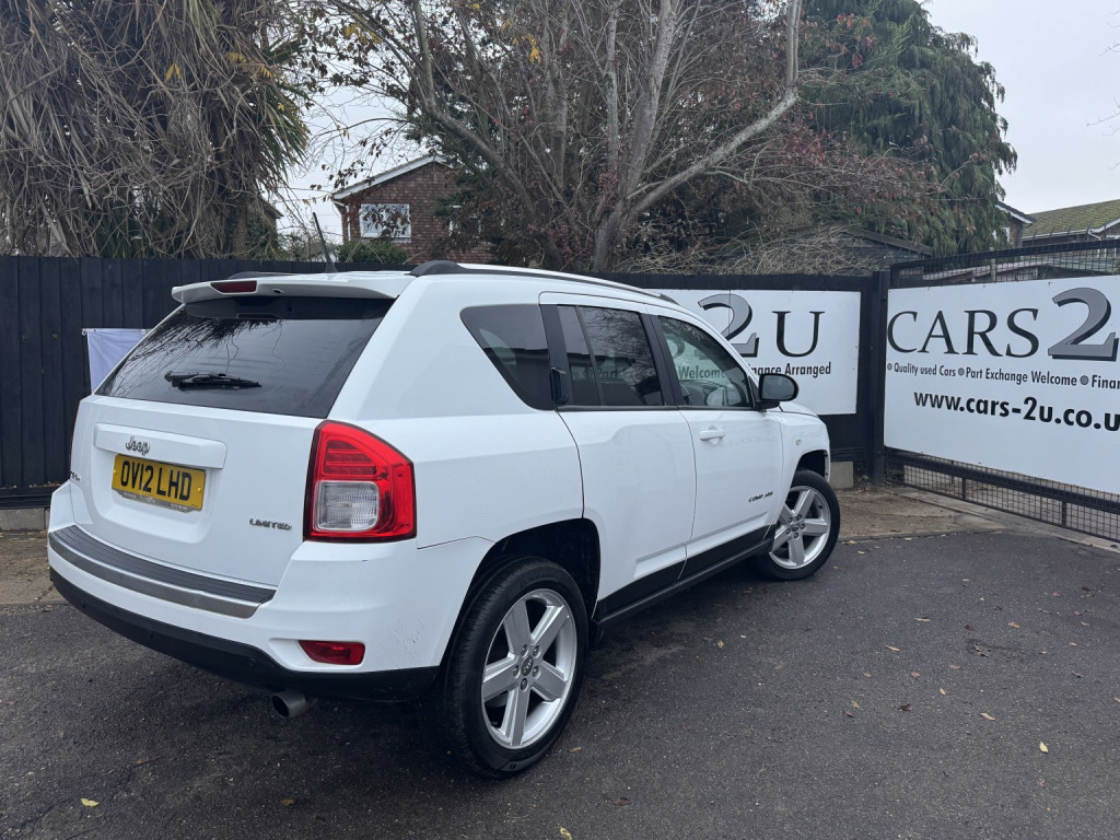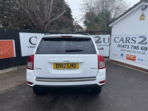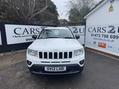 Cars2u - Quality Used Cars with a Personal Touch, , , Established in 2012, Cars2u is a family-run business dedicated to providing quality used vehicles with a friendly ,no-pressure approach. Conveniently located on the outskirts of Ipswich, we have excellent transport links via the A12 and A14 and are just a 10 minute drive from Ipswich train station. , At Cars2u , every vehicle we sell is HPI clear and undergoes a full inspection to ensure it meets our high standards .For added peace of mind ,all cars come with an RAC warranty. We also offer finance options ,part exchange and nationwide delivery, making it easier than ever to find your perfect car. , , Our focus is on customer satisfaction, providing a relaxed and professional service without the pressure of a hard sell. whether youre looking for your next car or simply exploring your options were here to help. , Visit Cars2u today and experience a stress-free way to buy a car. , WE ARE VERY PLEASED TO OFFER THIS VERY GOOD LOOKING VERY CLEAN 2012 12 JEEP COMPASS 2.2 CRD LIMITED, GOOD SPEC ,SHE HAS COVERED A MEAR 84,000 MILES FROM NEW HAS A GOOD SERVICE RECORD ,SHE WILL BE SERVICED WHEN SOLD AS WELL AS A CURRENT MOT UNTILL 07/2026 AND WILL COME WITH A 3 MONTH RAC WARRANTY FOR HER NEW OWNERS COMPLETE PEACE OF MIND.