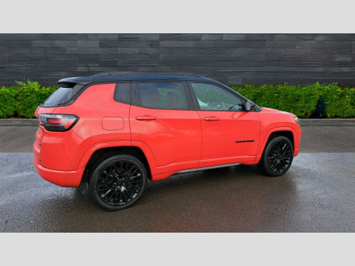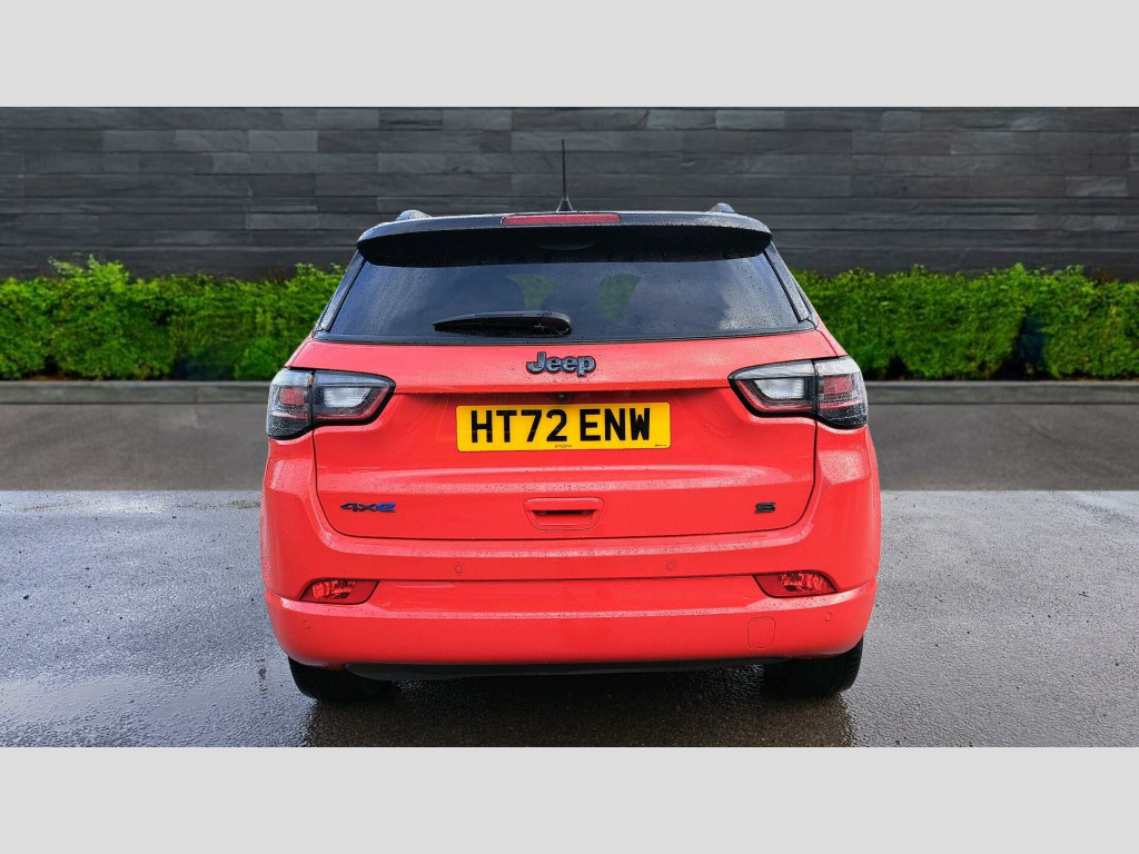 This 2022 Jeep Compass GSE T4 S is a superb example of a modern, capable SUV.  It features a 1.3 litre petrol plug in hybrid engine paired with a four wheel drive drivetrain, making it a versatile choice for various driving conditions.  This Euro 6 compliant vehicle also benefits from a suite of useful features, including the ParkSense Rear Park Assist System for easier manoeuvring, and LED reflector headlamps for excellent visibility.  Inside, you'll appreciate the convenience of Bluetooth streaming audio and the comfort of heated front seats.The S trim level of this Jeep Compass offers a refined driving experience. The automatic headlights ensure you always have optimal illumination, while the plug in hybrid technology provides an efficient and environmentally conscious way to travel. These elements combine to make this particular Jeep Compass a standout option, offering a blend of advanced technology, comfort, and practicality that sets it apart.. 10.1in Uconnect DAB Touchscreen Infotainment with Navigation, 12V Auxiliary Power Outlet - Second Row, 160MPH Primary Speedometer, 19in Alloy Wheels - Painted Gloss Black, 2nd Row Air Outlet, 4XE Badge - e-Hybrid Badge, Active Lane Management, Active Speed Limiting Device, Adaptive Cruise Control with Stop and Go, Air Vents - Front and Rear, Airbags - Drivers, Airbags - Front Side, Airbags - Front and Rear Side Curtain, Airbags - Passenger, Alarm - Premium, All Speed Traction Control, Anti Lock 4 Wheels Disc Brake - ABS, Armrest - Rear with Cupholders, Aspherical Driver Exterior Mirror, Auto Dimming Rear View Mirror, Automatic Air Conditioning, Automatic Electronic Hold Brake, Autonomous Emergency Braking with Pedestrian and Cyclist Detection, Battery Run Down Protection, Battery Skid Plate, Belly Pan - Underbody Protection, Black Side Roof Rails, Black Window Surrounds, Bluetooth Streaming Audio, Body Coloured Door Handles, Capless Fuel Filler, Cargo Compartment Carpet, Cargo Compartment Cover, Cargo Compartment Lamp, Cargo Compartment Organiser, Cargo Load Floor, Cargo Tie Down Loops, Centre Console with Sliding Armrest, Centre Rear 3-Point Seat Belt, Child Seat Anchor System, Coastdown and Run-in Optimization, Coat Hooks, Compass Badge, Dash Insulation, Deep Tint Privacy Glass, Door Cladding - Gloss Black, Door Mirrors - Gloss Black, Door Mirrors - Power Folding, Door Mirrors with Indicators, Driver Assist Handles, Drivers Manual Height Adjustable Seat, Drowsy Driver Detection System, Dual Note Electric Horns, Dual Tyre Pressure, ECE16 Homologation Label, ERM - Electronic Roll Mitigation, ESC - Electronic Stability Control, EV-PHEV Mode 2 Charging Cable, Electric Power Steering, Electronic Park Brake, Fascias - Gloss Black, Fix and Go Puncture Repair Kit, Fix and Go Puncture Repair Kit Label, Forward Collision Warning Plus Mitigation, Front Fascia - Belly Pan Skid Plate, Front Height-Adjust Seatbelts, Front License Plate Bracket, Front Map Pocket LED Light, Front Parking Sensors, Full Length Centre Console, Gear Knob - Leather Wrapped, Global Telematics Box Module - TBM, Gloss Black Exterior Badging, Gloss Black Exterior Sill Mouldings, Gloss Black Grille with Neutral Grey Rings, Glovebox Light, Glovebox with Damper Door, Head Restraints - Rear x3, Headlamp Off Time Delay, Headlamps - Automatic, Headlights - Levelling System, Headlights - Smartbeam, Heated Front Seats, Heated Rear Window, Heated Steering Wheel, Hill Descent Control, Hill Start Assist, ISA - Intelligent Speed Assist, Illuminated Entry, Infotainment Plus Pack, Instrument Cluster - 10.25in TFT Colour Display, Instrument Panel, Integrated LED Daytime Running Lamps, Interior Door Handle LED Lamp, Internal Rear Grab Handles, Jeep Badge, Jeep Call Assistance Label, LED Front Fog Lamps, LED Reflector Headlamps - High, LED Tail Lamps, Lane Support System, Lower Bodyside Cladding - Black, Manual 6-Way Adjustable Driver Seat, Map-Reading Lamps, Media Centre Electronics Storage, Media Hub, Neutral Grey Exterior Accent, Occupant Detection System, Outside Temperature Display, Overhead Console, Overhead Dome LED Lights, ParkSense Rear Park Assist System, ParkView Rear Back Up Camera, Passenger Airbags Deactivation, Passenger Assist Handles, Passive Entry with Keyless Go, Power 2-Way Driver Lumbar Adjust, Power Liftgate Release, Power Locking Fuel Filler Door, Power Windows - Driver and Passenger Express Up and Down, Pre-Conditioning Auto AC, Rain Brake Support, Rain Sensitive Windscreen Wipers, Rear 60-40 Split Folding, Rear Air-Conditioning and Heater Vents, Rear Door Child Protection Locks, Rear Fascia, Rear Fog Lamps, Rear Seat Belt Reminder, Rear Window Washer-Wiper, Removable Short Mast Antenna, S Badge, Seats - Front Back Map Pockets, Seats - Front Passenger Fold Flat, Selec-Terrain System with Sport Mode, Spare Wheel Storage Insulation, Speakers x6, Steering Column - Electronic Shaft Lock, Steering Column - Tilt and Telescopic, Steering Wheel - Mounted Audio Contro.